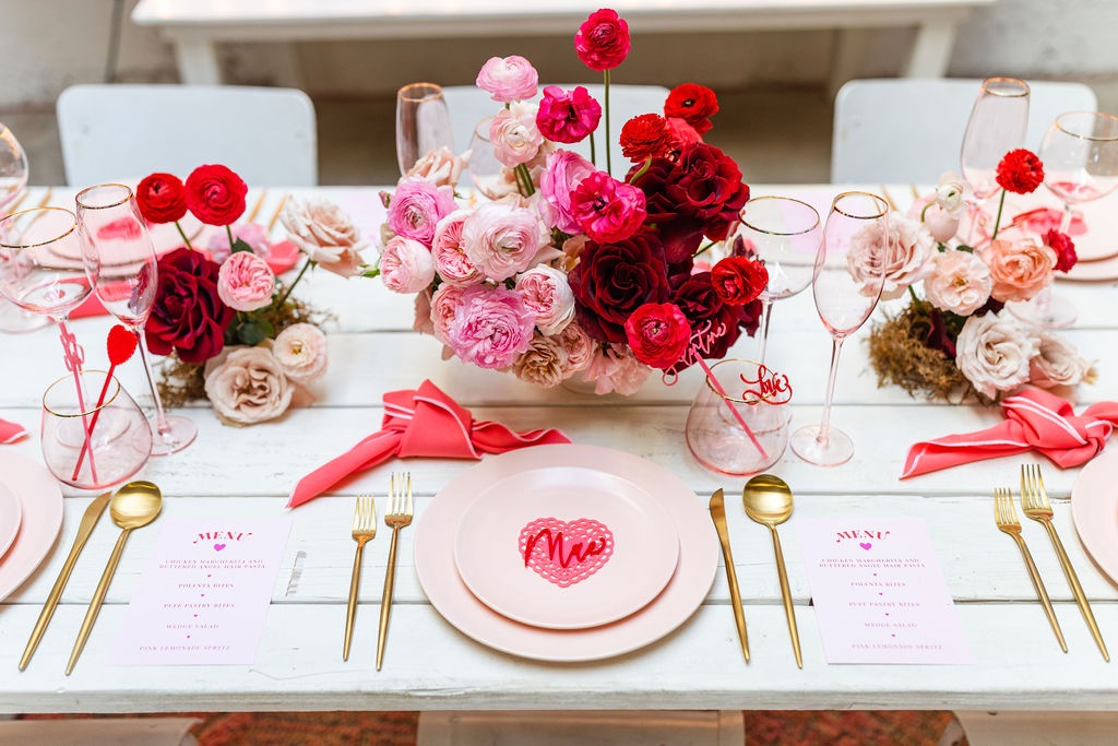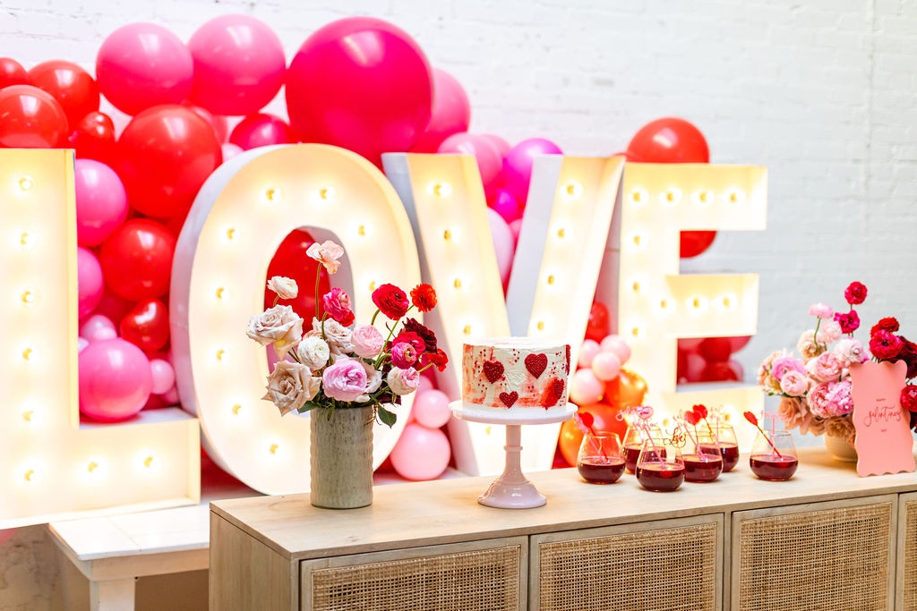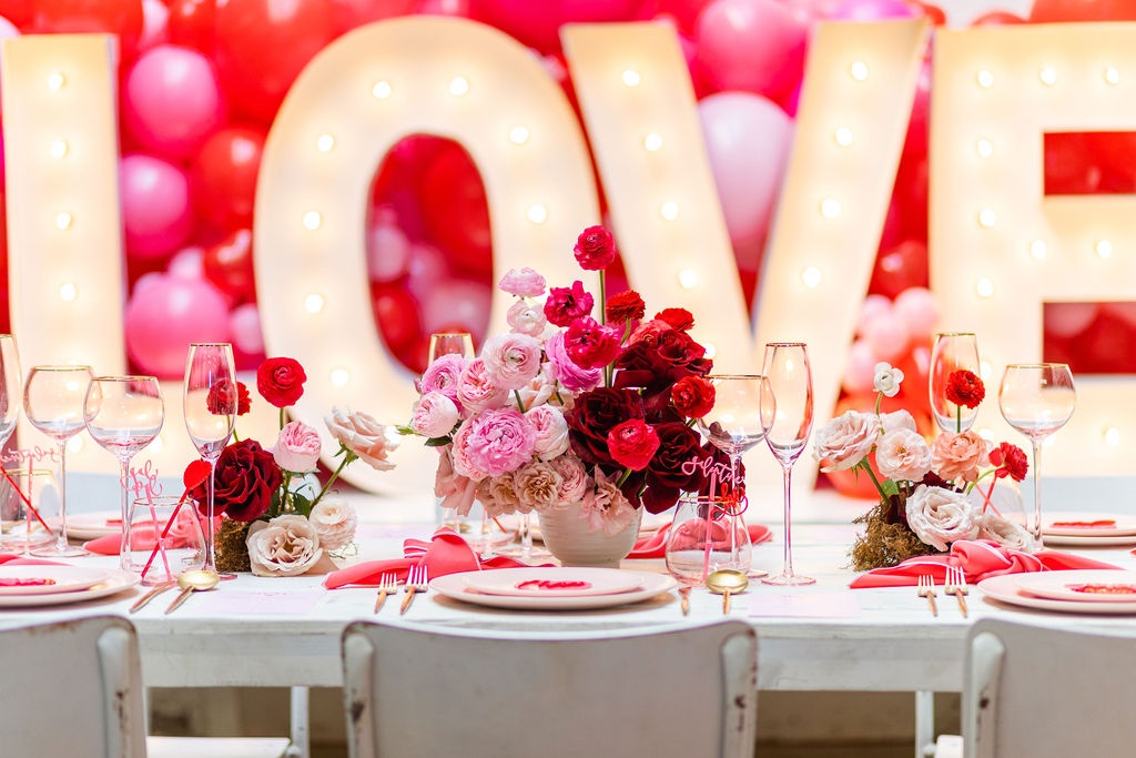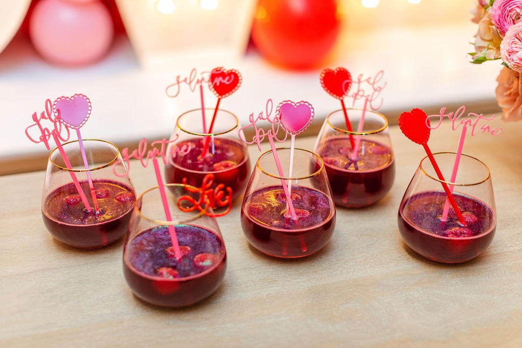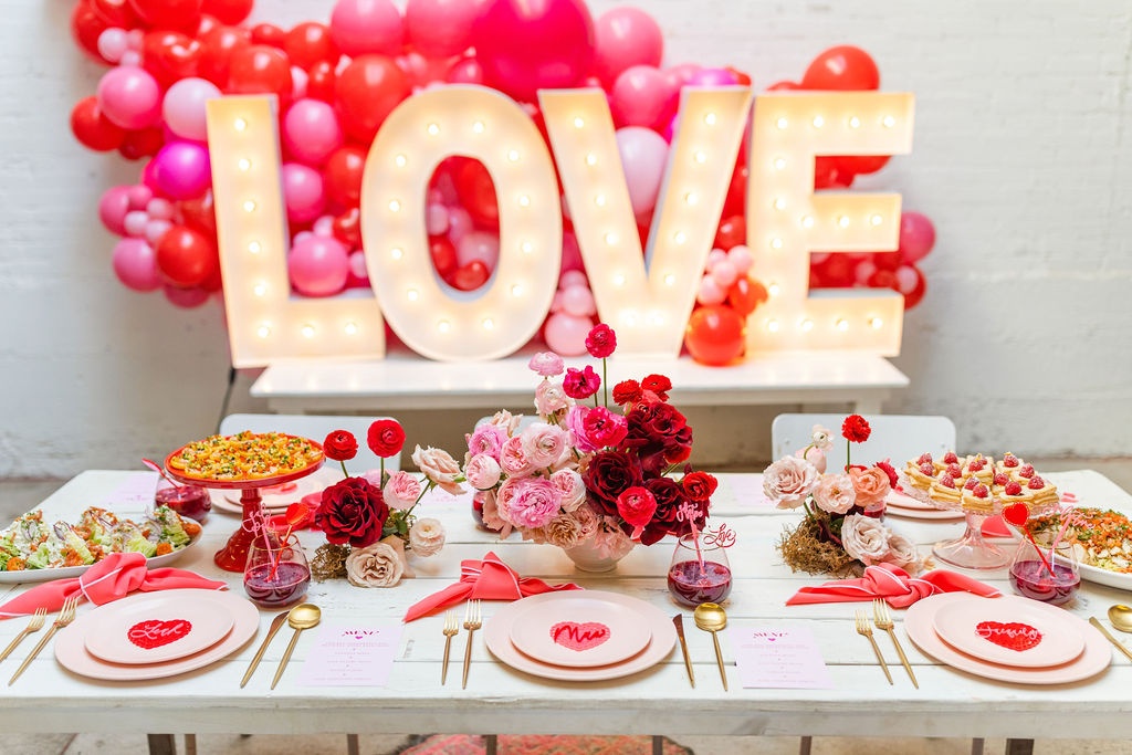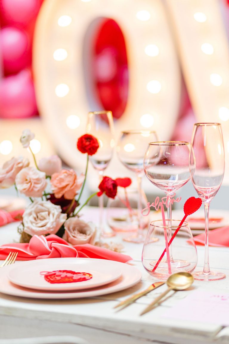 Мы показали вам уже множество Дней святого Валентина для девочек, теперь делимся идеей для мам! Ведь и нам нужно отдохнуть за бокалом вина вместе с подругами. Также идею можно использовать для вечеринки пар или устроить такой ужин на двоих. Сервировка была минималистичной: нежные розовые тарелочки, золотые столовые приборы, розовые бокалы и никакой скатерти! Стол украсили букеты из роз разных оттенков. Специально для праздника заказали акриловые палочки для коктейлей и именные таблички. Посмотрите, какая красотища! И ведь для декора нужна лишь посуда и цветы. Задний фон украсили буквы-светильники и гирлянда из шаров. Все это можно заказать в аренду для вашей вечеринки! Мам ждали самые изысканные угощения: слойки с малиной и хлопьями золота, бисквитный розовый торт и коктейли с перламутровым пищевым красителем! Источник: beijosevents.com
