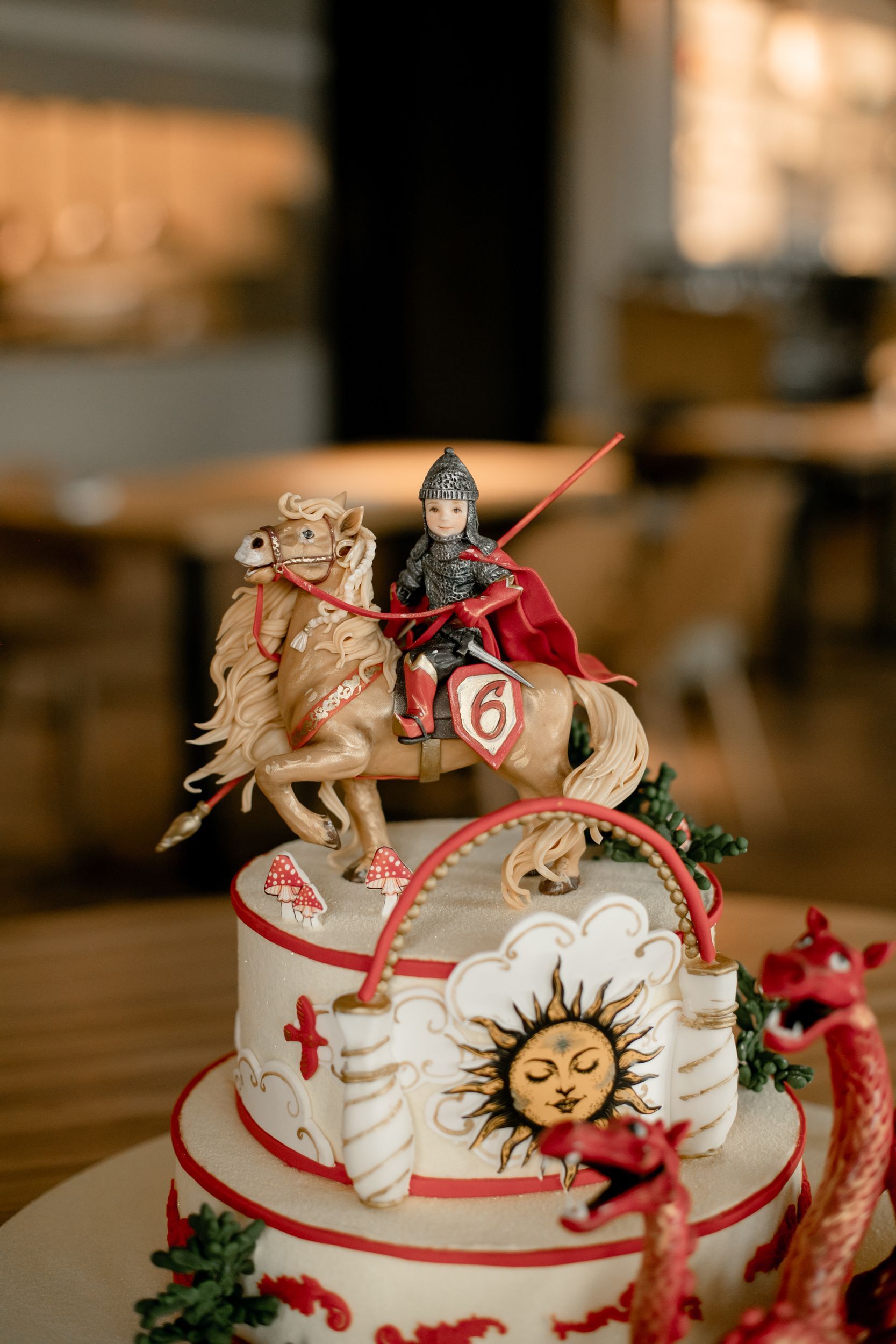 Наш роскошный тортик будто сошёл со страниц сказок Пушкина! На вершине был маленький богатырь, напоминающий Ваню, а внизу сидел Змей Горыныч.