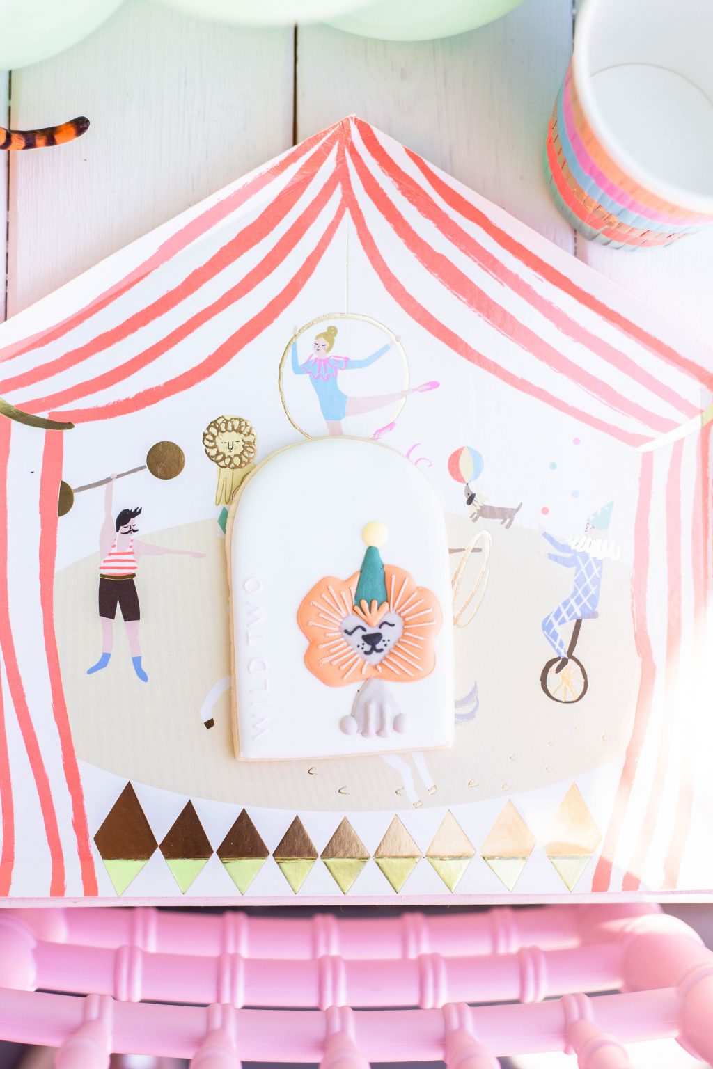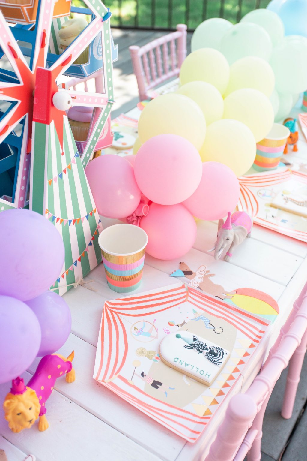Цирк — это прекрасная тематика для дня рождения и мальчиков, и девочек! А еще она очень нравится самым маленьким именинникам — ведь у них еще нет любимых персонажей, но они очень любят яркие украшения и веселье! Для малышки Холланд оформили чудесный пикник на свежем воздухе, украсив все коллекцией Цирк для девочек! Тут были и тарелки-шатры, и удивительные салфеточки в форме собачки на шаре, и стаканчики с пастельной бахромой. Это очень красивая коллекция декора, которая так нравится девочкам. Тортик был самым простым — белый цилиндр, украшенный конфетти внизу, а сверху топпером и фигуркой жирафа. Но зато оформление самого праздника было пышым и ярким. Взять хотя бы фотозону — здесь была гирлянда из пастельных шаров и огромные плюшевые животные! Посмотрите на счастливое лицо именинницы! Вот почему так важно отмечать даже самые первые дни рождения! Если вам, как и нам, очень понравилась эта коллекция и праздник, ищите внизу ссылки на нужные товары! Источник: madisonmagill.com