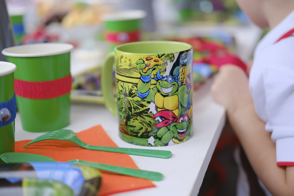 Это уже четвёртый день рождения, который мы устраиваем для Феди — первый был на годик, а теперь ему уже 4, а тематика отражает его интересы. Добро пожаловать на праздник с Черепашками-ниндзя! Вот такую фотозону мы соорудили для этой вечеринки — элементы напоминают о мультике: трубы, кирпичная стена, дорожные конусы и бочки. В голове сразу всплывают закутки улиц и канализации, где бегали черепашки. Фирменная цифра от Жени — куда без неё! Очень лаконичная, но стильная. Печенье как произведение искусства! Никогда не престаём удивляться, как кондитерам удаётся создавать такую красоту своими руками. В начале праздника с детьми играли Сплинтер и Эйприл. Мы решили не использовать мохнатые костюмы и уши — несолидно. Вместо этого наш герой красовался на празднике в потрясающем крысином гриме! В первой части праздника дети подюирали себе костюмы, изучали оружие и разные боевые приёмчики. Затем было классное научное шоу с азотом — но дети тут не просто науку изучали, а использовали её во благо. Готовили мороженое! Мы нашли тематические тарелки с черепашками, а вот стаканы сделали своими руками — добавили к ним повязки из гофрированной бумаги с глазками. Ах, да. Каждого героя на тарелочке ждала повязка! Ведь как же совершать подвиги без перевоплощения? После этого пришли долгожданные гости! К детям прибыли Микеланджело и Рафаэль. Вместе они устраивали гостям спортивные подвижные игры, играли с ними в прятки, а потом, когда все уже устали и потратили запасы энергии, вынесли тортик! Вот такой крутой он был! Украшенный силуэтом ночного города, а ещё мастерскими фигурками всех четырёх черепашек.