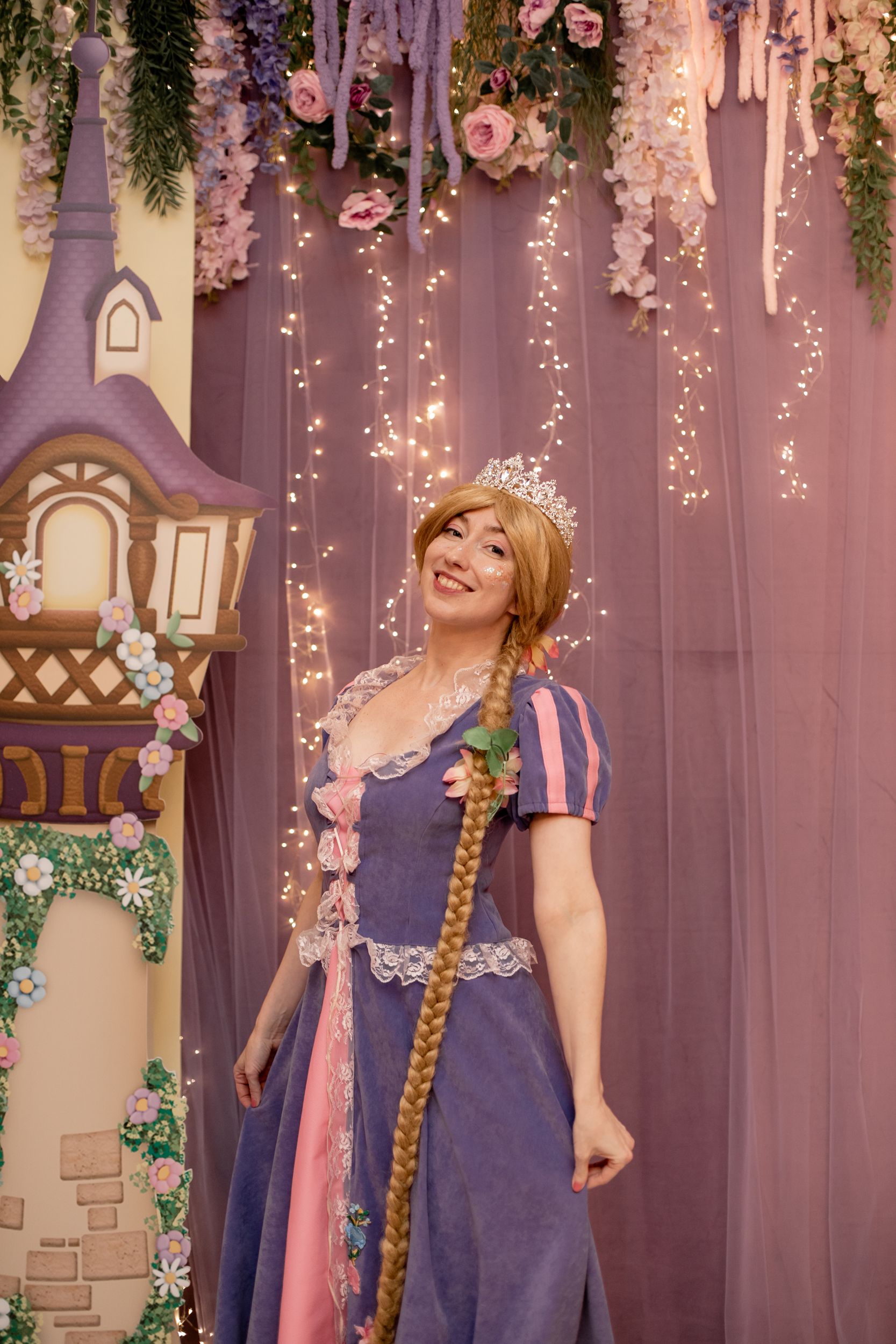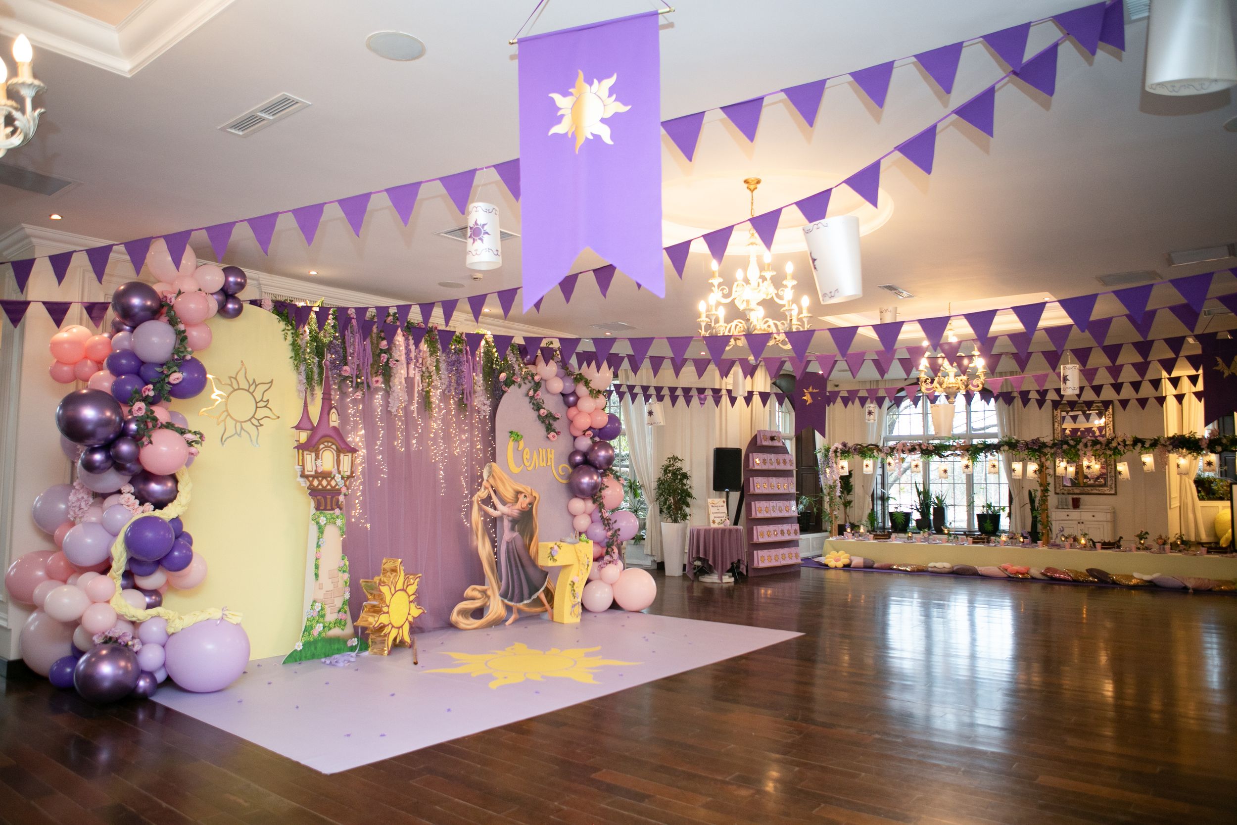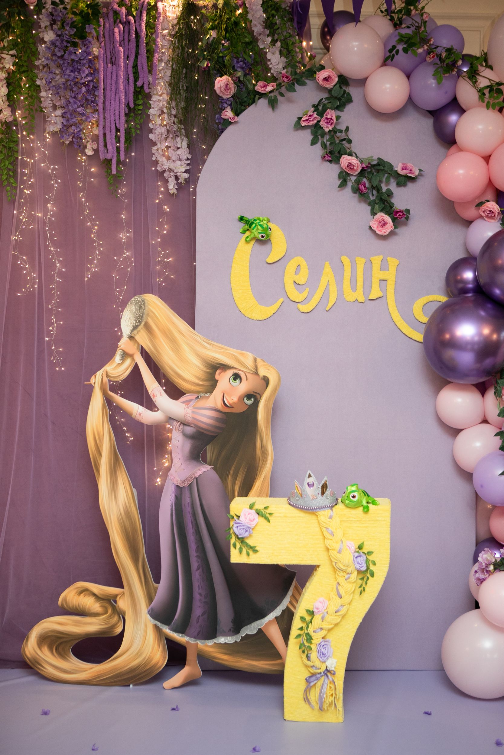 День рождения Селин превратился в настоящую сказку — мы создали праздник в стиле «Рапунцель», где каждая деталь помогала гостям перенестись в мир волшебства и приключений. Наша цель была проста: не просто украсить пространство, а оживить любимую историю, дать возможность каждому почувствовать себя частью сказки.