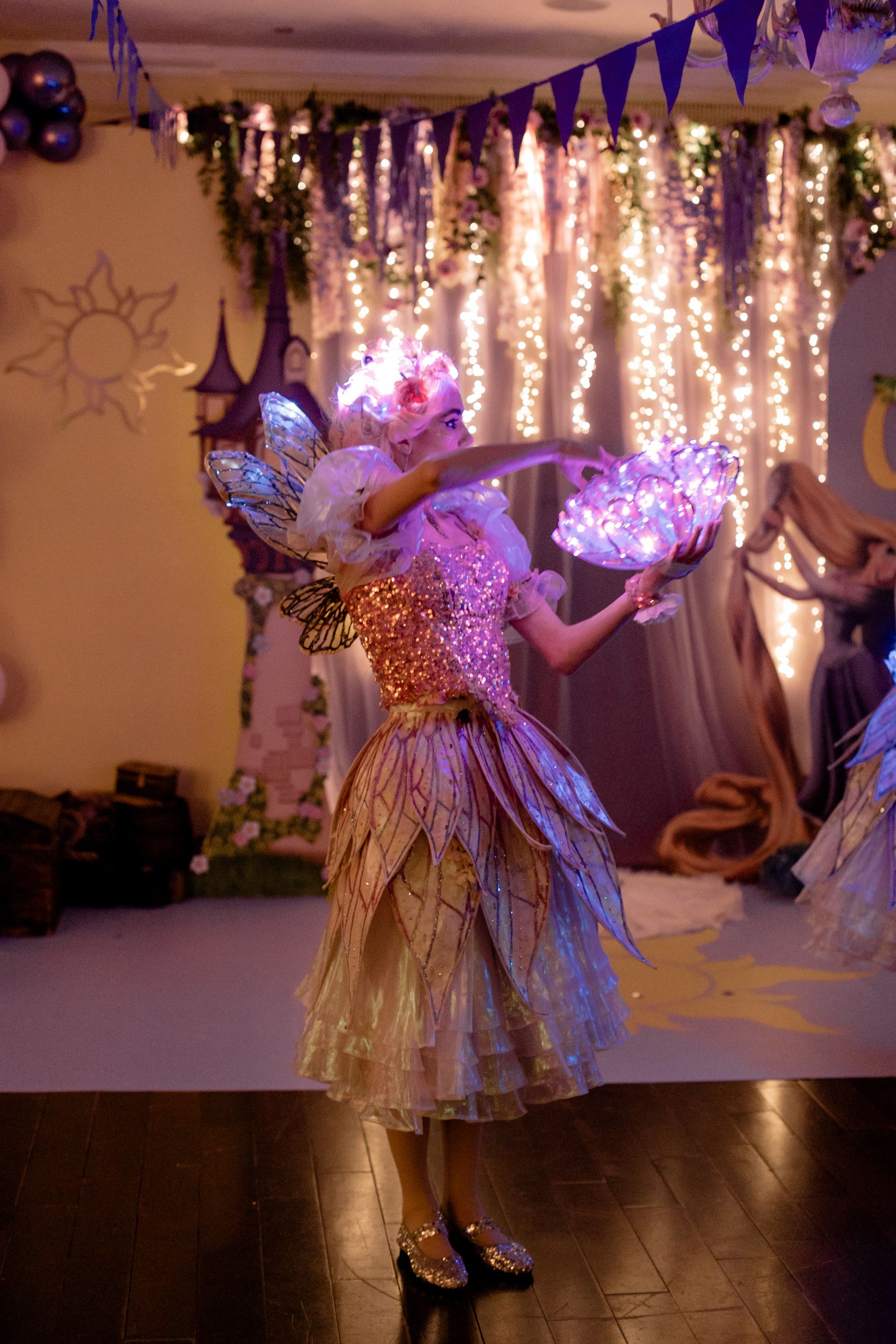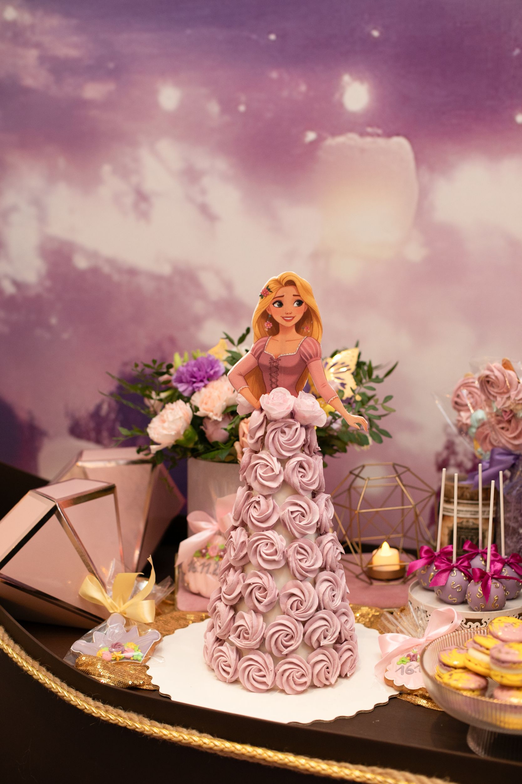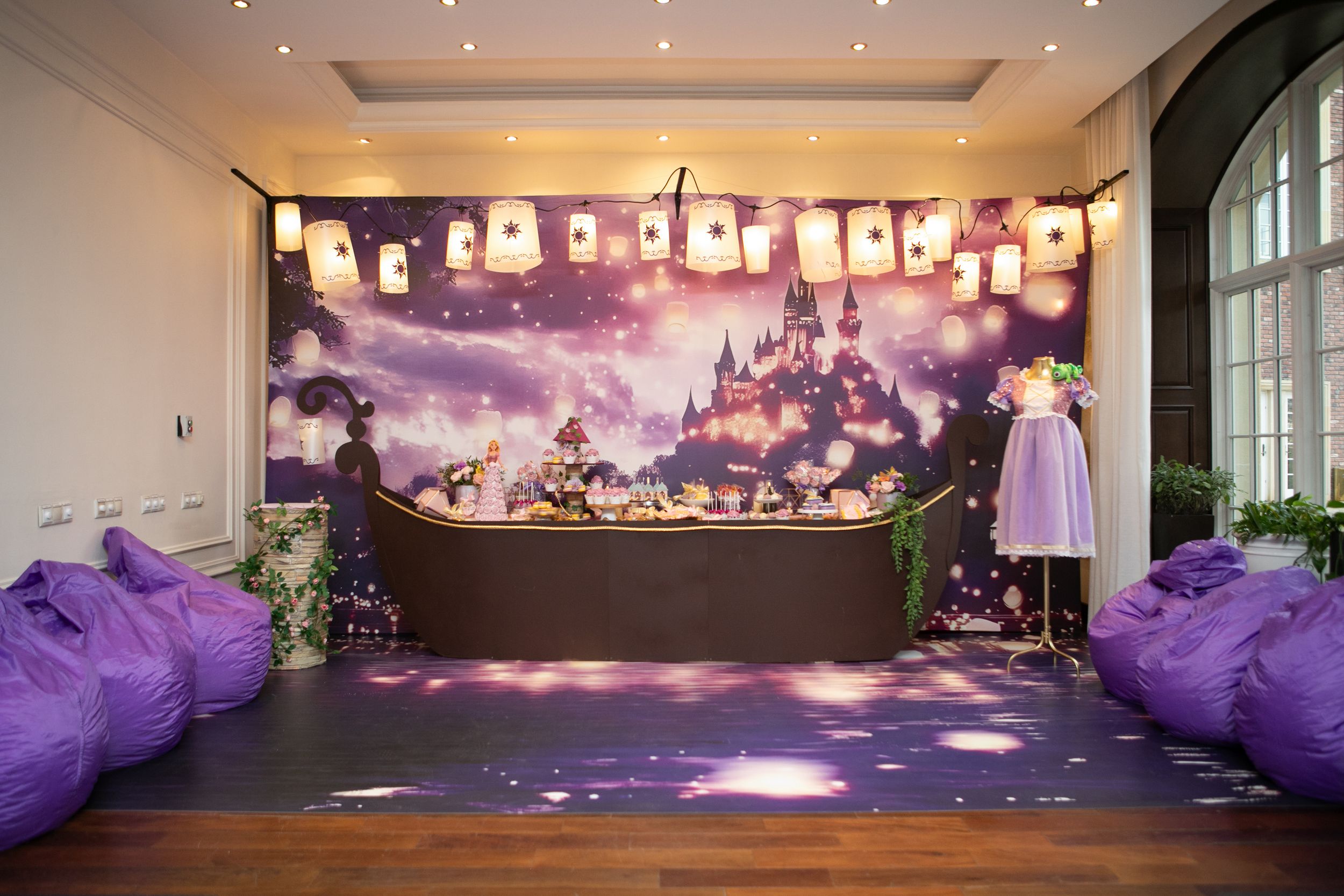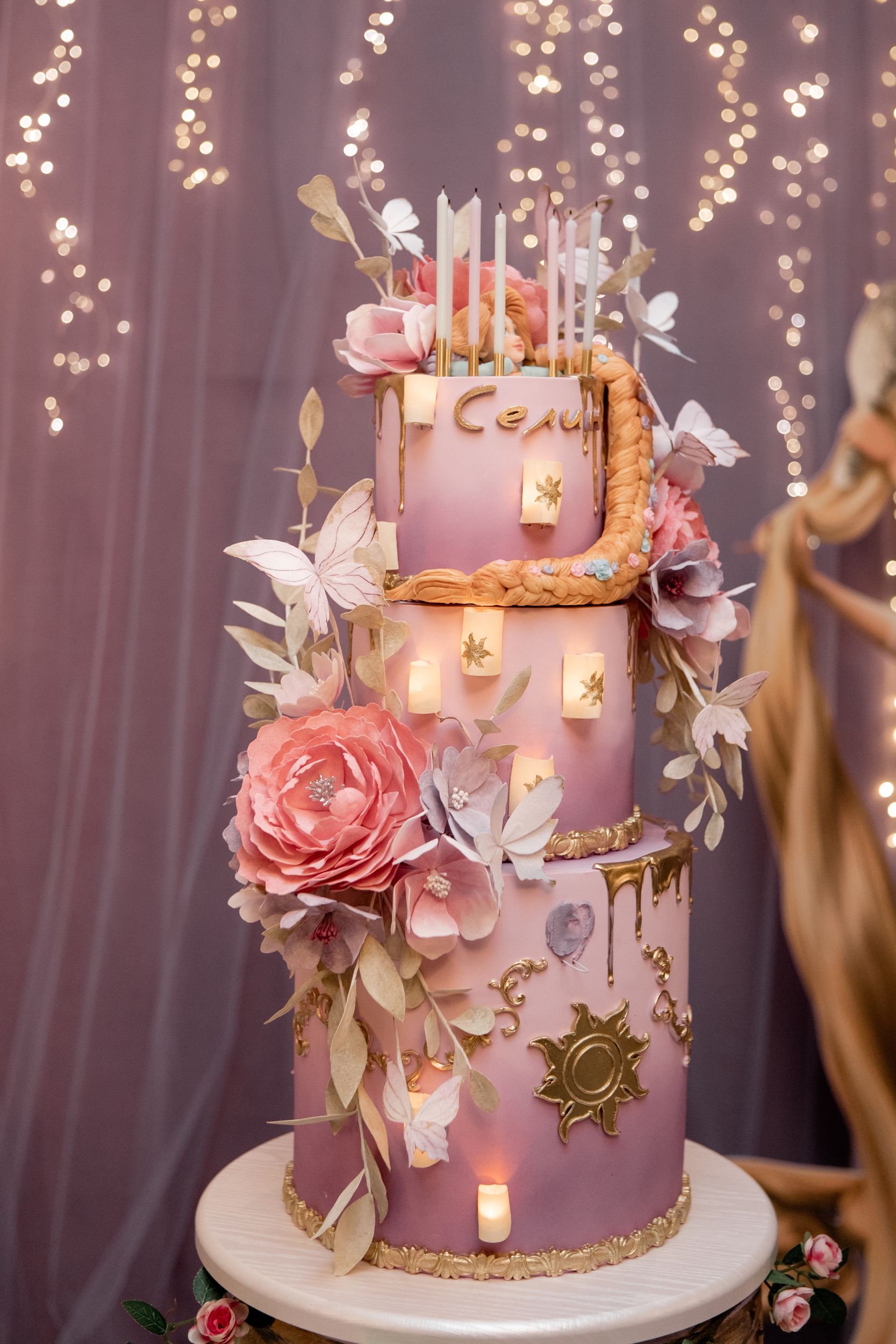 День рождения Селин превратился в настоящую сказку — мы создали праздник в стиле «Рапунцель», где каждая деталь помогала гостям перенестись в мир волшебства и приключений. Наша цель была проста: не просто украсить пространство, а оживить любимую историю, дать возможность каждому почувствовать себя частью сказки.