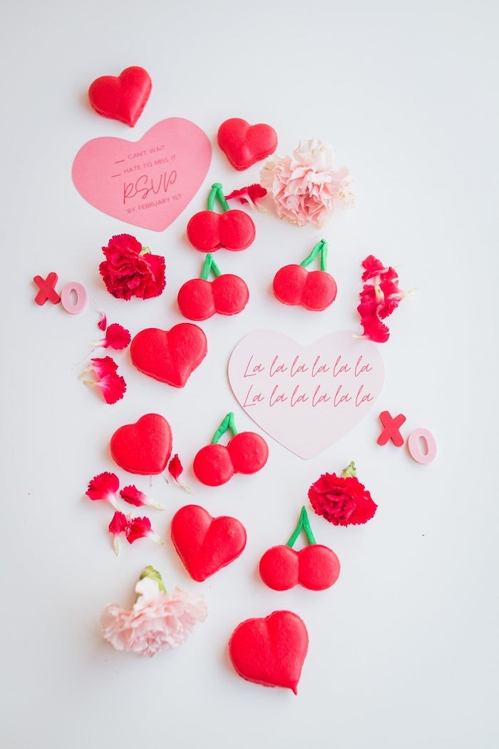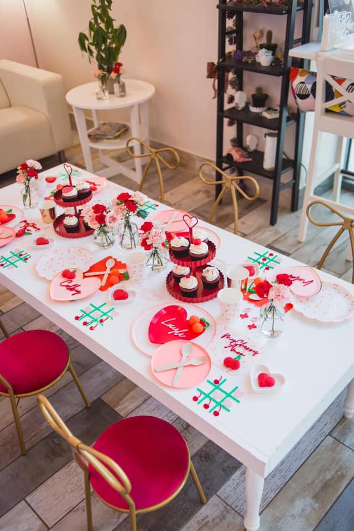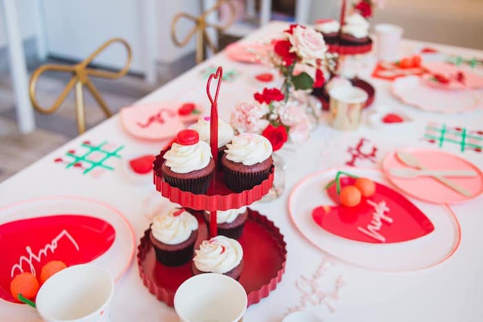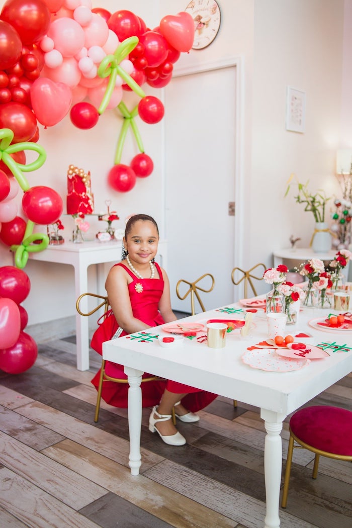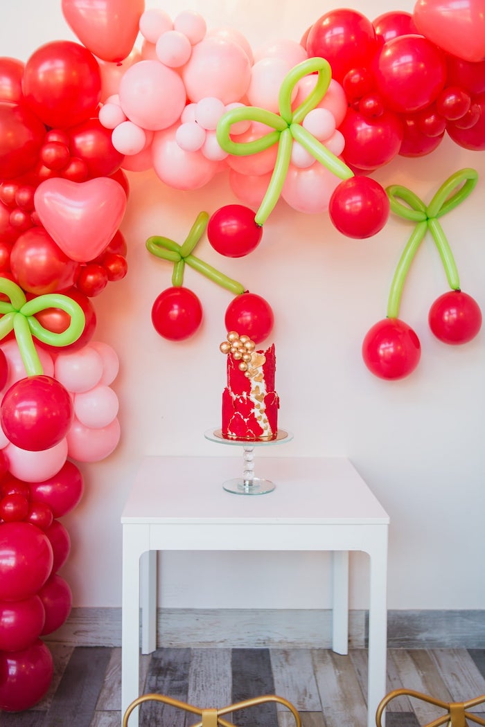 Один из самых популярных символов праздника (не считая сердечек) — это вишенки. Именно поэтому с ними так часто оформляют День святого Валентина! На этом празднике было очень много вишенок во всех проявлениях: акриловые украшения, сладкие печеньки, мини-пиньяты и огромные вишни из шаров. Сделать вишенки очень легко — в этом вам поможет наш аэродизайнер, но одних их недостаточно, поэтому пространство можно украсить огромной гирляндой из шаров красного и розового цвета. В сервировке использовалась посуда Мери Мери — простые круглые тарелочки и сердечки! У ним добавили две вида стаканчиков с вишенками и простые золотые. А еще были дизайнерские детальки: рассадочные карточки из акрила, очаровательные крестики-нолики из акрила. И, конечно, классные печеньки разных форм, которые не только вкусные, но и красивые :) Источник: karaspartyideas.com