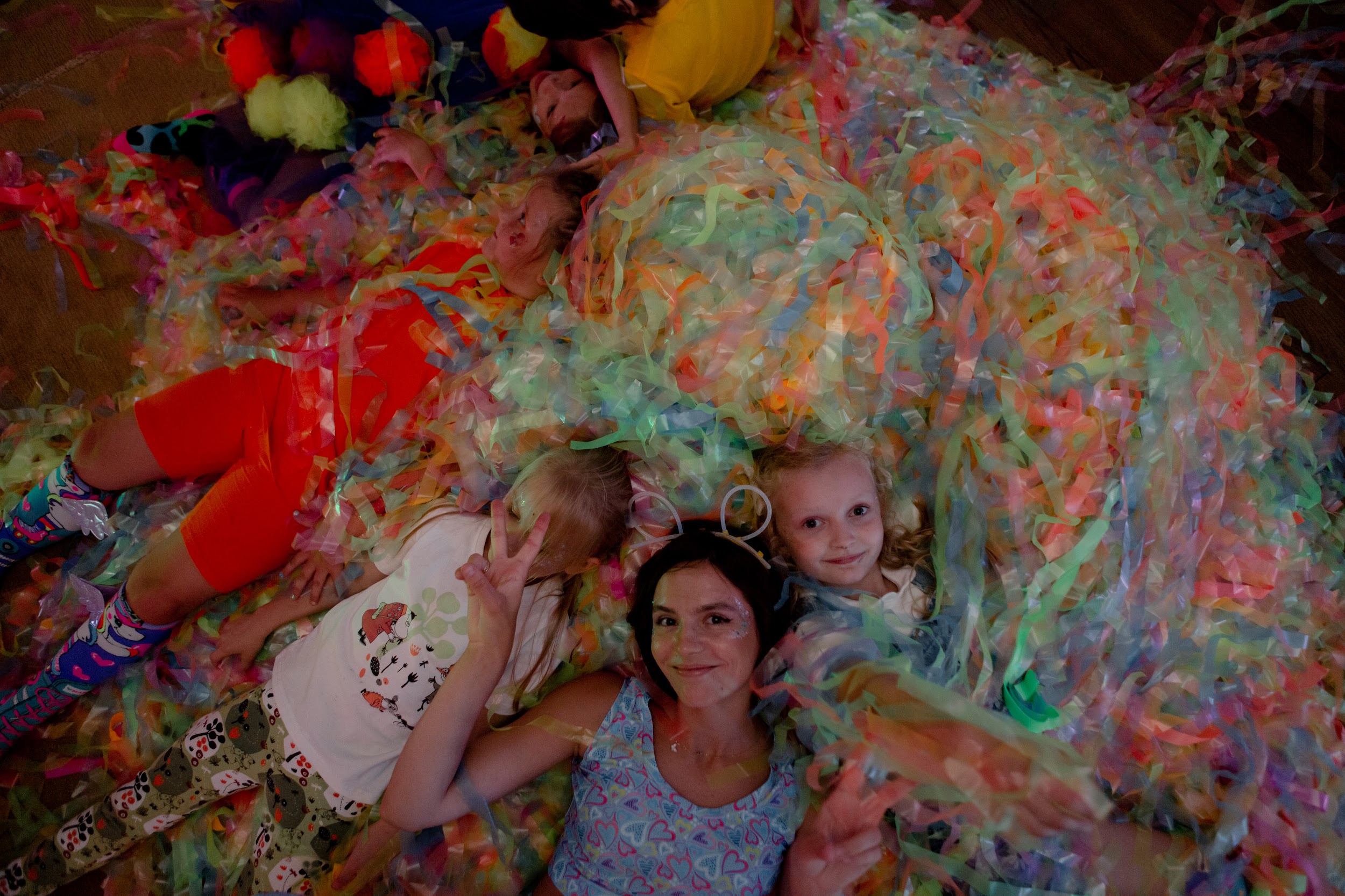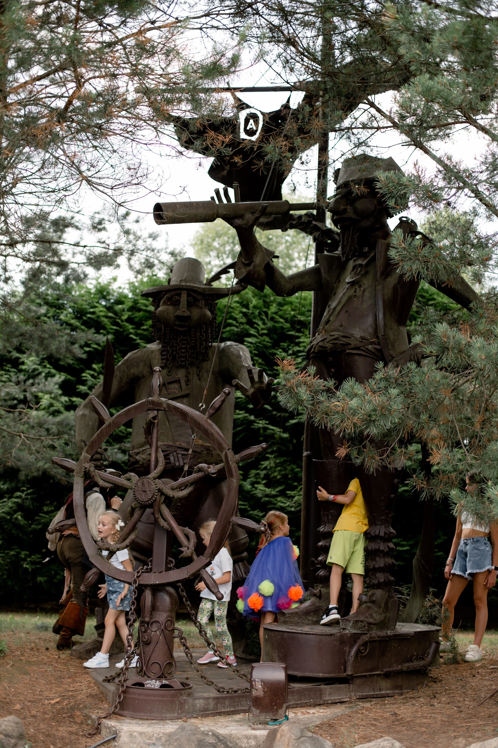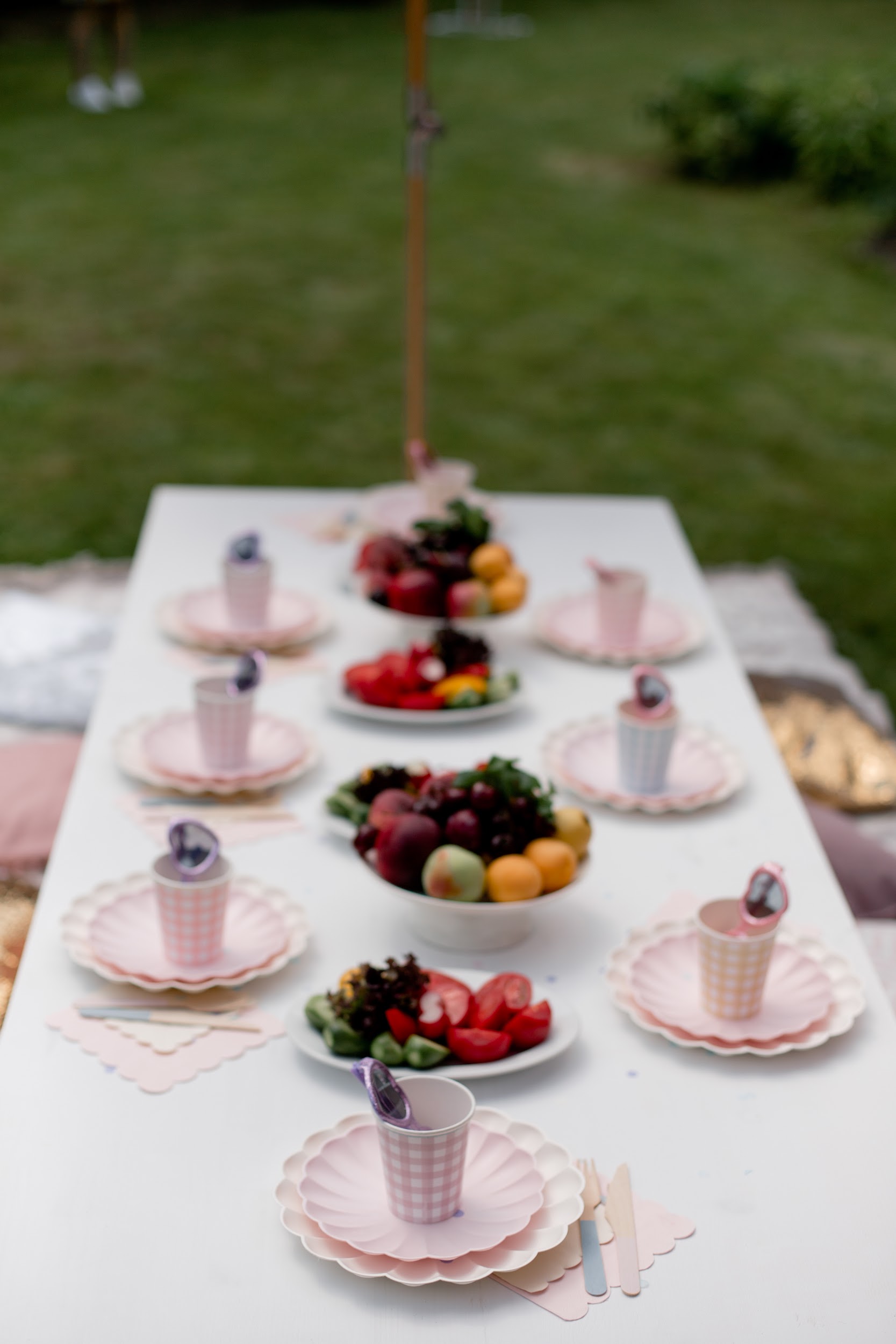 Возможно, вы помните, наш масштабный день рождения на территории в 1 гектар! Сонечке очень понравился тот день рождения, и он попросила такой же праздник на свежем воздухе. У её родителей тоже красивый участок возле дома, так что мы знали, что этот день рождения выйдет не хуже! Мы организовали три зоны, чтобы разделить активности. На главной полянке был вигвам с ленттами,где проходили все развлечения: игры, мастер-классы и был организован бьюти-бар. Здесь же мы накрыли на стол, чтобы детишки могли перекусить после активностей. Мы выбрали лёгкие закуски — овощи и фрукты. А стол сервировали чудесной коллекцией Эко от Мери Мери. В бьюти-баре все желающие могли преобразиться! Вплести ленты или косички в волосы, сделать татушки или макияж. Первым был МК по картинкам из цветного песка — а после все проивзедения упаковали в красивые пакетики, чтобы дети забрали их потом с собой. После мастер-класса и перекуса дети отправились на вторую локацию, в чудесный лес с речушкой. А забрали их с собой Джек Воробей и Элизабет! Кстати, наши аниматоры не только потрясающие актёры, но и всегда выступают в невероятных костюмых ручной работы. Квест проходил по всей территории дома, а затем уводил гостей на территорию дачного посёлка, через лес... Дети разгадывали загадки и находили таинственные послания. Квест был организован не только интересно, но и очень красиво! В конце подсказки привели ребят к этой скульптуре, где был спрятан клад — футболки, которые они использовали в следующем МК! Это был очень крутой DIY, ведь дети использовали не только акриловые краски, но и всяческие украшения, чтобы создать абсолютно любой дизайн на свой вкус. После мы немного прервались с занятиями на свежем воздухе и ушли в дом на неоновую бумажную дискотеку! Когда начало вечереть, все вернулись на улицу, в нашу третью зону — вигвам. Его мы украсили огоньками, на столе расставили свечи. Это была наша зона для вечернего чаепития с именинным тортом!