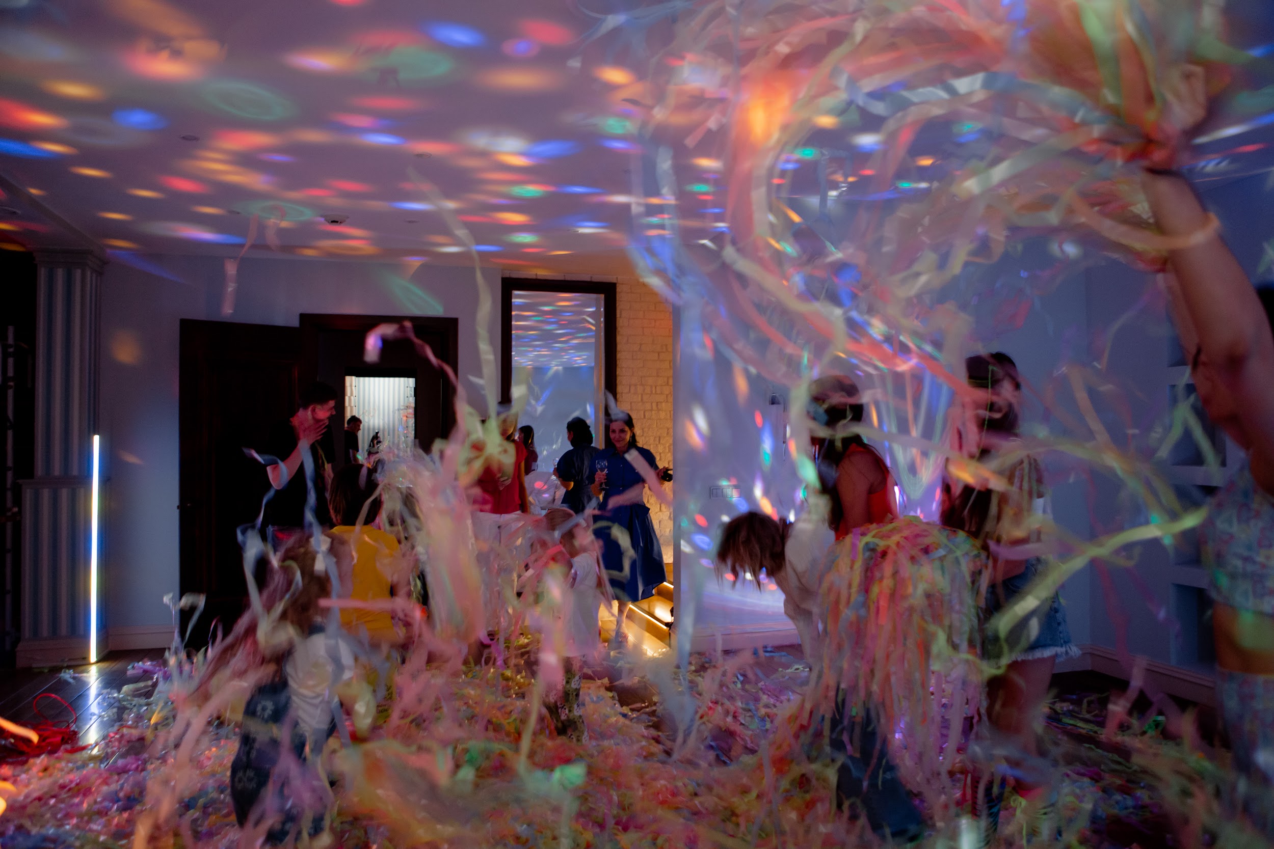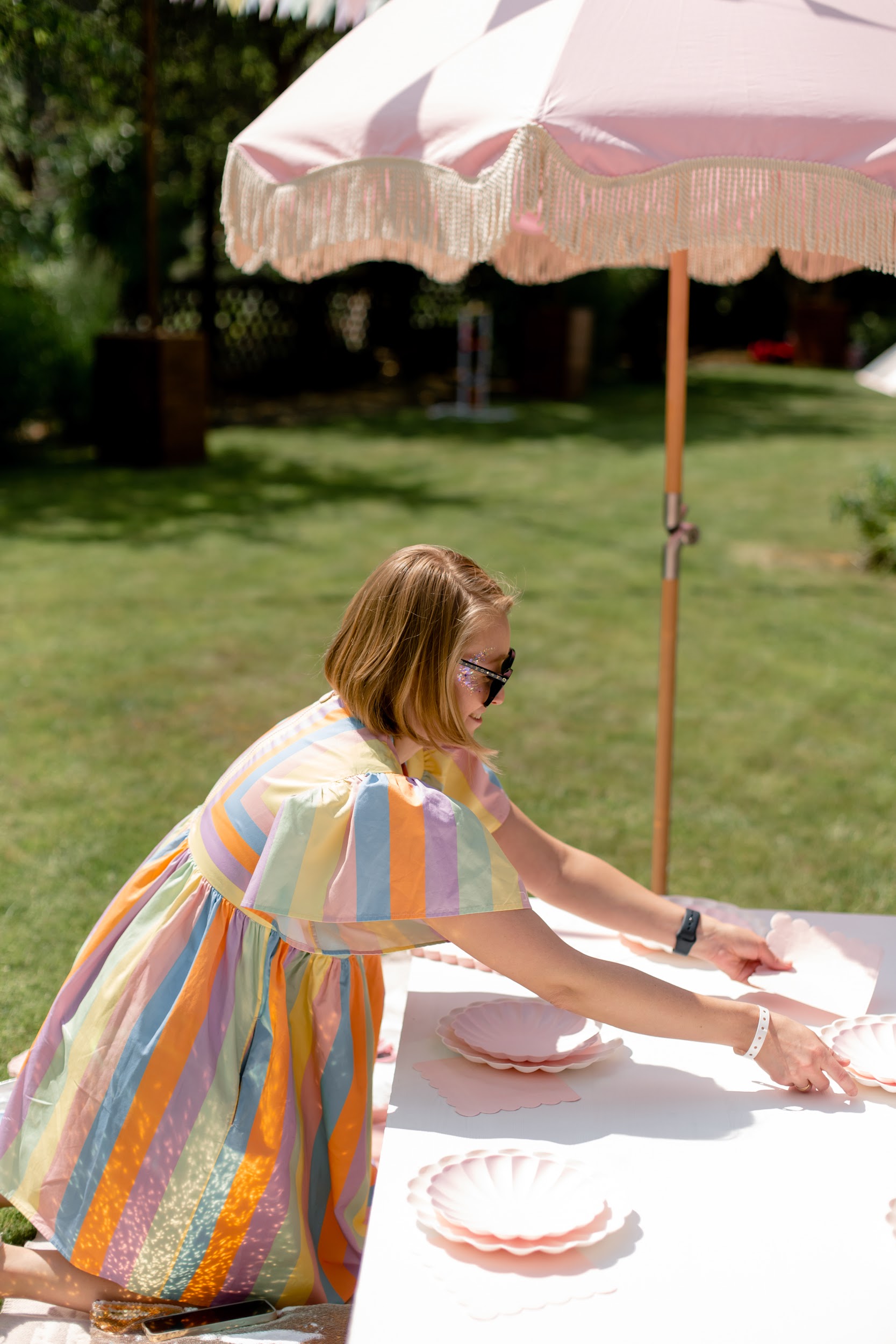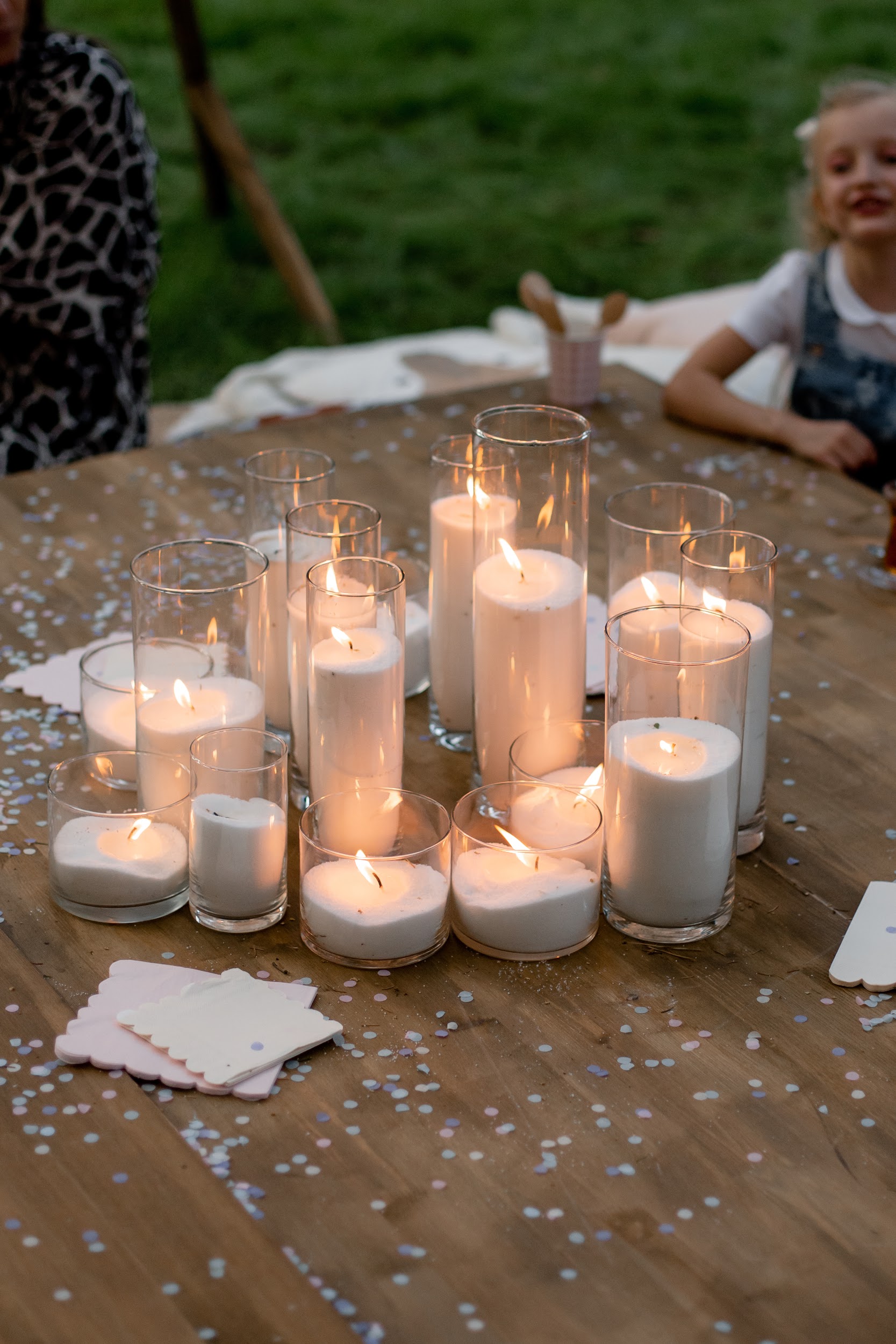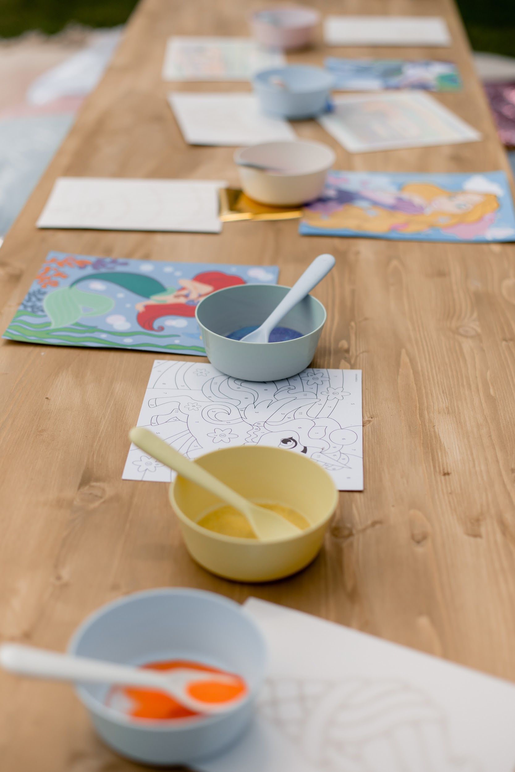 Возможно, вы помните, наш масштабный день рождения на территории в 1 гектар! Сонечке очень понравился тот день рождения, и он попросила такой же праздник на свежем воздухе. У её родителей тоже красивый участок возле дома, так что мы знали, что этот день рождения выйдет не хуже! Мы организовали три зоны, чтобы разделить активности. На главной полянке был вигвам с ленттами,где проходили все развлечения: игры, мастер-классы и был организован бьюти-бар. Здесь же мы накрыли на стол, чтобы детишки могли перекусить после активностей. Мы выбрали лёгкие закуски — овощи и фрукты. А стол сервировали чудесной коллекцией Эко от Мери Мери. В бьюти-баре все желающие могли преобразиться! Вплести ленты или косички в волосы, сделать татушки или макияж. Первым был МК по картинкам из цветного песка — а после все проивзедения упаковали в красивые пакетики, чтобы дети забрали их потом с собой. После мастер-класса и перекуса дети отправились на вторую локацию, в чудесный лес с речушкой. А забрали их с собой Джек Воробей и Элизабет! Кстати, наши аниматоры не только потрясающие актёры, но и всегда выступают в невероятных костюмых ручной работы. Квест проходил по всей территории дома, а затем уводил гостей на территорию дачного посёлка, через лес... Дети разгадывали загадки и находили таинственные послания. Квест был организован не только интересно, но и очень красиво! В конце подсказки привели ребят к этой скульптуре, где был спрятан клад — футболки, которые они использовали в следующем МК! Это был очень крутой DIY, ведь дети использовали не только акриловые краски, но и всяческие украшения, чтобы создать абсолютно любой дизайн на свой вкус. После мы немного прервались с занятиями на свежем воздухе и ушли в дом на неоновую бумажную дискотеку! Когда начало вечереть, все вернулись на улицу, в нашу третью зону — вигвам. Его мы украсили огоньками, на столе расставили свечи. Это была наша зона для вечернего чаепития с именинным тортом!