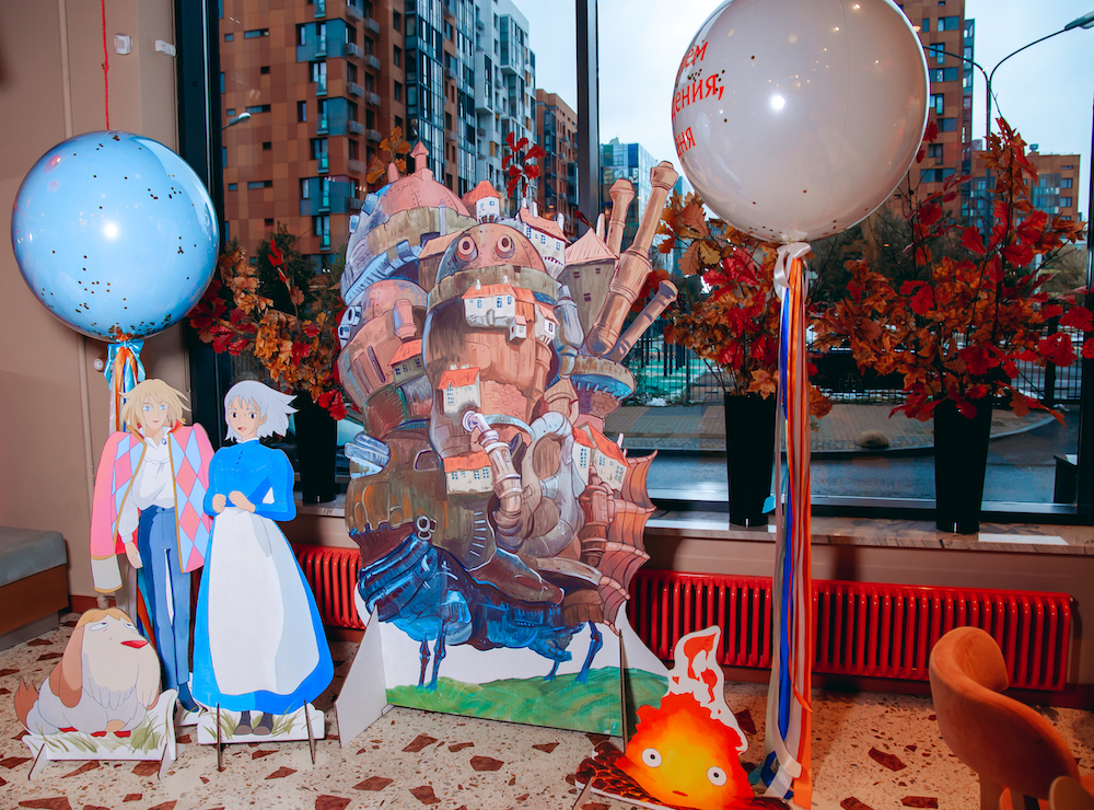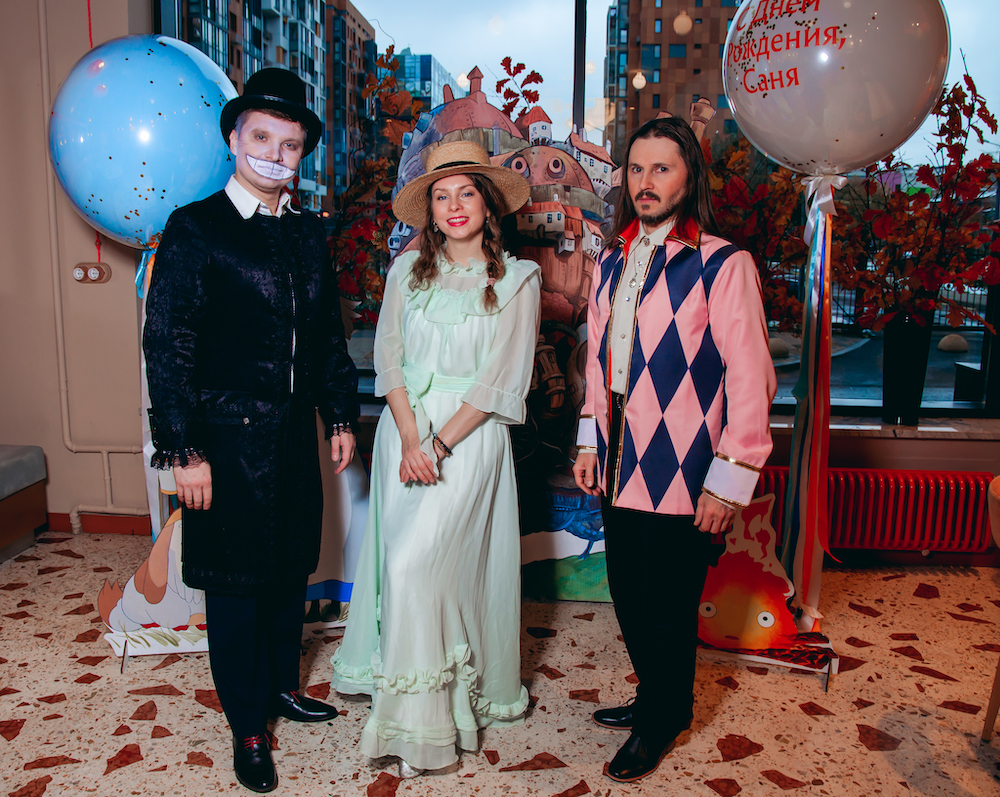 Какие только праздники мы не создаём — всё зависит только от ваших пожеланий и фантазии! Нашему имениннику Саше исполнялось 5 лет, и он обожает мультик «Ходячий замок Хаула». Кстати, мальчик просит называть его Саня, поэтому именно так мы и написали его имя на шарике :) Мы долго искали костюмы, как у героев мультфильма, и нашли! Это наши Пугало, Софи и Хаул. Анимационную программу мы подбирали в стилистике мультика — на празднике был фокусник в стиле стимпанк, который произвёл впечатление на ребят :) А это — волшебный тортик и пряники от нашего кондитера! Сделано с любовью к деталям :) Посмотрите, как мастерски расписаны пряники нашим кондитером! Обожаю, когда мы исполняем мечты детей — каждый радостный именинник радует и согревает наше сердце!