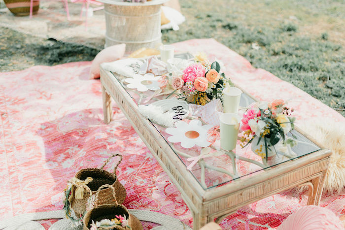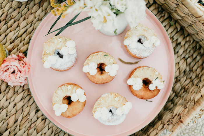 Летом можно устраивать не только яркие вечеринки, но нежные праздники на природе, в пастельных тонах и с нотками бохо. Эту очаровательную вечеринку с альпакой мама организовала для своих близняшек. Праздник был очень небольшим, пригласили только пару подружек, а стол накрыли в парке у озера. Для детей накрыли небольшой столик на красивом розовом пледе, рядом разложили мягкие подушки. На плетёной подставке именинниц ждал двойной тортик, соединённый топпером-радугой. Нависающую ветку использовали как основание для нежной гирлянды! Рядом также поставили для розовых стульчика для фото и просто для антуража, а позади был деревянный стеллаж с декором и угощениями. Стол украсили свежесобранные цветы и очаровательные тарелочки в форме ромашек. Всё было нейтральным, в нежных тонах, без принтов, но зато небольшие детальки стали смотреться необычно и ярко на этом спокойном фоне. Пончики украсили полукружьями ананасов, чтобы они напоминали радугу! А ещё для девочек изготовили дизайнерские веночки, которые сделали праздничные фото особенными. Но самое главное событие этого маленького торжества — пушистая альпака! Кажется чем-то невероятным, но мы уже проводили праздники с альпаками и другими животными, так что мы легко устроим и для ваших детей такой чудесный пикник! Источник: karaspartyideas.com