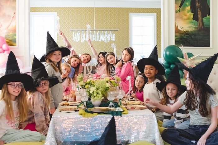 Девочки-гостьи активно включились в тематику праздника. Те, кто выбрал сторону Эльфабы, надели стильные очки и остроконечные шляпы, подчёркивающие их индивидуальность. Сторонницы Глинды украсили себя великолепными диадемами и взяли в руки волшебные палочки, создавая образ классических сказочных принцесс.