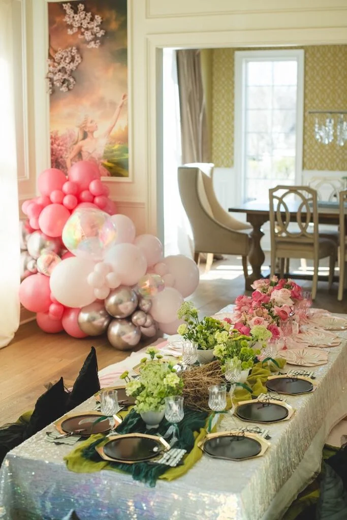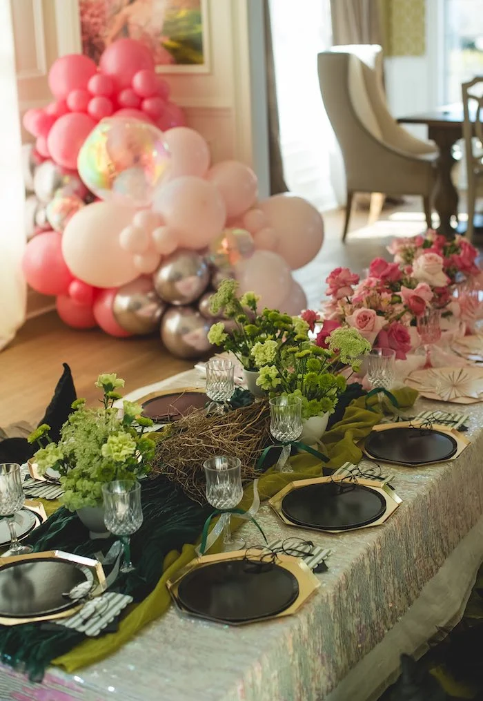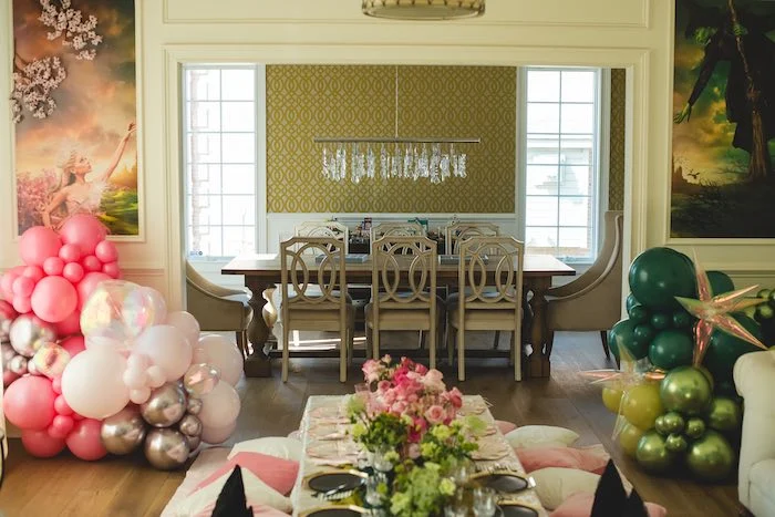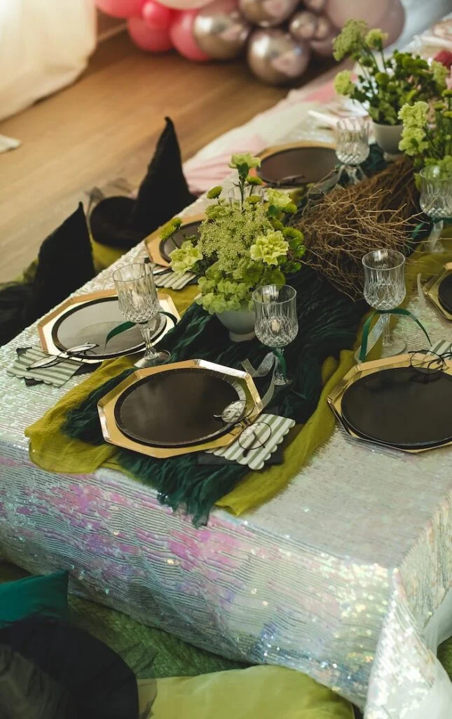 «Злая» — вероятно, самый обсуждаемый мюзикл 2024 года! А сказки мы очень любим, поэтому не можем не поделиться этим праздником. Здесь было необычное оформление, отражавшее тематику фильма. Часть комнаты и половина стола были оформлены в нежных розовых тонах, символизирующих добрую волшебницу Глинду. Вторая половина поражала воображение чёрно-зелёными оттенками, отражающими характер сильной и независимой Эльфабы.