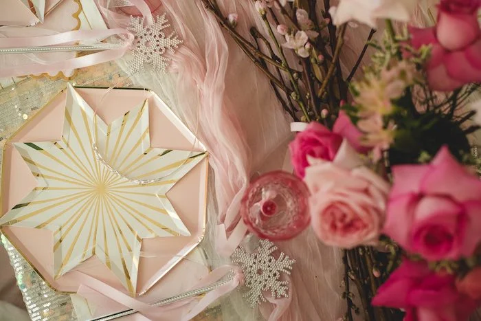 Если у чёрной стороны на тарелках лежали очки, то на розовой девочек ждали волшебные палочки.