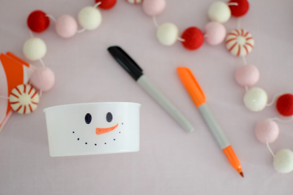 А декорировать десерт просто - нарисуйте мордашку снеговика прямо на стаканчиках!