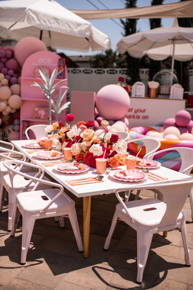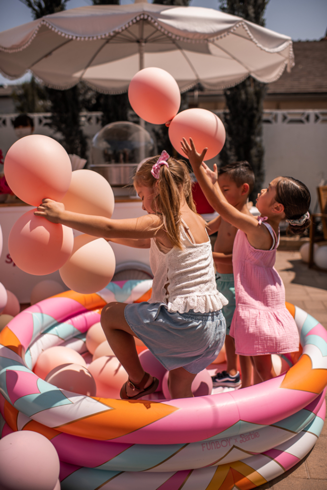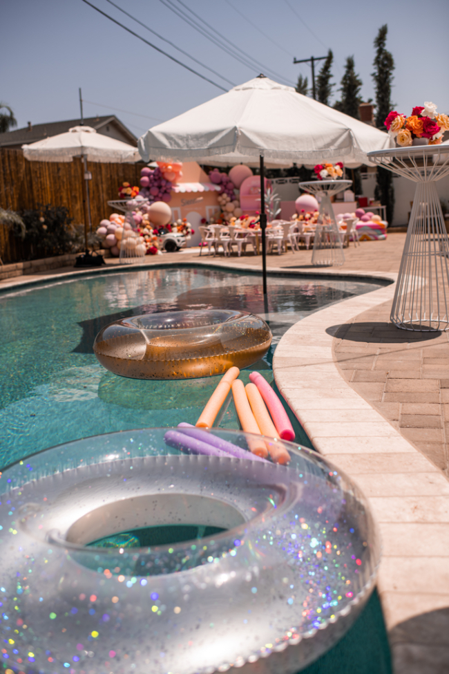 Come on, Barbie, let's go party! Сегодня эта песня будет крутиться у вас в голове! Эта вечеринка — мечта не только маленьких девочек, но и взрослых — жизнь в розовом цвете, мечтательная и лёгкая. Это просто ВАУ, нам очень понравилось это оформление. Декораторы не боялись добавить цвета и к розовому добавили персиковый, красный, все оттенки розового. Получилось очень ярко, сочно и радостно. Невозможно не почувствовать прилив дофамина, когда видишь эту красоту. Нам очень нравятся тематические уголки, например, как этот с лимонадами. Мы тоже часто ставим на мероприятиях тележку с мороженым, едой и многим другим. Всю фотозону украсили живыми розами в огромном количестве! Как здорово, когда ряжом с домом есть бассейн — Барби-вечеринка получилась пляжной. Кстати, мы тоже устраивали праздники в таком стиле — с радостью выполним ваш запрос! Источник: inspiredbythis.com