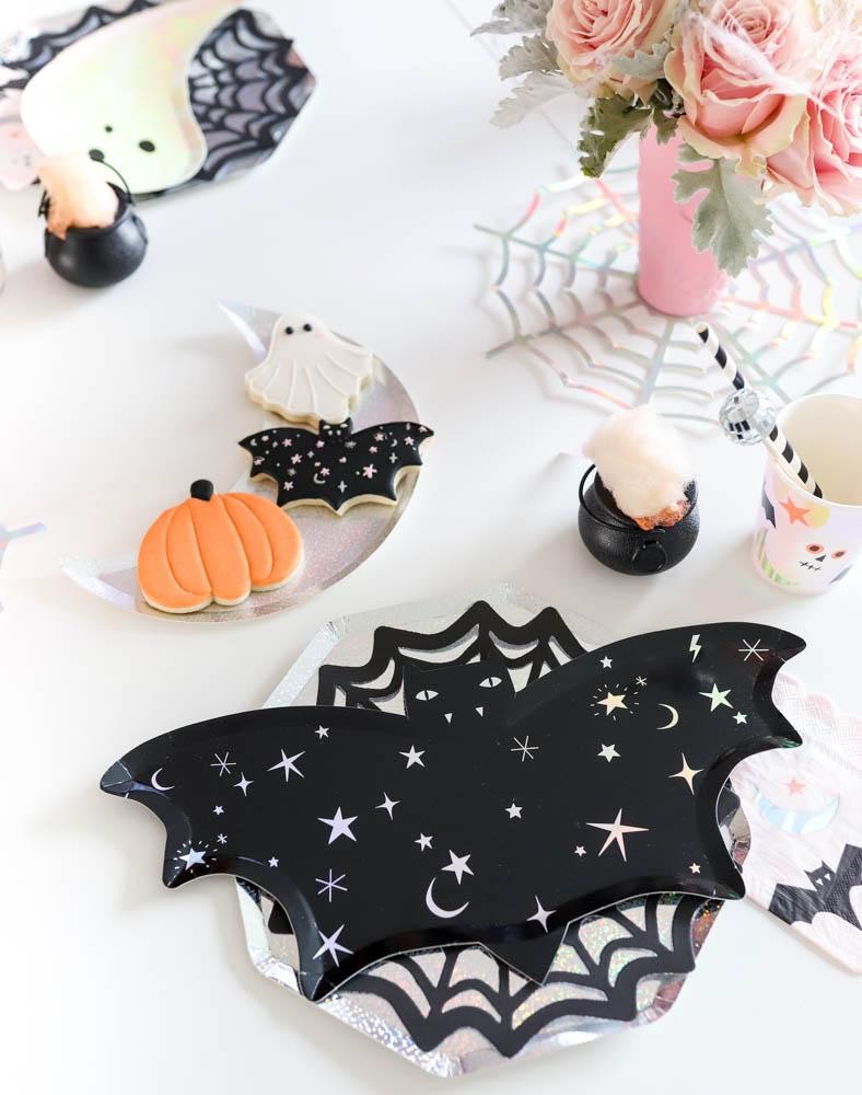 Если в штатах дети привыкли на Хэллоуин охотиться за сладостями на улице, то в России нам привычнее отмечать этот праздник дома. Так что на нас пандемия особо не повлияет, ловите стильную идею домашнего праздника! Прекрасная идея развеяться с друзьями, пригласить их с детьми на костюмированную вечеринку! Дети особенно будут рады нарядиться в каких-нибудь жутких персонажей. Эта вечеринка была очень нежной, с обилием цветов, очаровательных деталей и стильной посуды от Мери Мери. Белоснежный стол сервировали разноцветными паутинками и композициями из тарелочек. В одном случае сочетали перламутровые геометрические и летучих мышей, а в другом вместо мышей добавляли милых призраков. Также закуски раскладывали на тарелках-полумесяцах, которые популярны не только в Новый год! А возле каждой тарелочки была небольшая сладка закуска, сладкая вата в котелке! Акриловый стенд для сладостей оформили в стиле праздника — добавили рожицу, чтобы он превратился в привидение! На полочки расставили котелки и печеньки. Но самая главная сладость праздника — это роскошный двухъярусный торт в персиково-розовых тонах. Его украсили мышками и полумесяцами. Малыши все с ответственностью подошли к дресс-коду и нарядились в разных персонажей! Для того, чтобы они смогли сделать крутые памятные снимки, была организована пышная фотозона. Над потолком повесили огромную гирлянду из шаров и дополнили ее занавесом из стримерсов. Посмотрите, какой котел можно легко сделать самостоятельно! С помощью огромного шарика и двух длинных для моделирования сформировали сам котел, а "внутрь" поместили зелье, связку маленьких шариков. Среди других очаровательных сладостей были еще и вот такие печеньки в розовых тонах и совершенно чудесные макаронс, не круглые, как мы привыкли, а необычной формы! Источник: alittleconfetti.ca