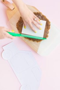 Новый год – это не только волшебные украшения, но и вкусные сладости! Продолжая розово-конфетную тематику, мы покажем вам, как сделать чудесную имбирную машинку. Что мы получим: один пряничный автомобиль! Что нам понадобится? Ингредиенты на пряник: 1¼ стакана маргарина 1½ стакана сахара 1 стакан патоки (можно заменить – 5:1 меда и коричневого сахара, растопить на водяной бане) ⅓ стакана воды 4 стакана муки ⅓ стакана кукурузного крахмала 2 ст.л. молотой корицы Пищевой краситель (розовый, черный, серый) Шаблон автомобиляКоролевская глазурь: 2 стакана сахарной пудры 3 ст.л. взбитого белка 6 ст.л. воды Шаг 1.Разогреваем духовку до 180 градусов. Шаг 2. Взбиваем маргарин с сахаром, далее вливаем патоку и воду. Смешиваем. Смешиваем муку, крахмал и корицу, постепенно добавляем сухую смесь к нашей жидкой смеси и перемешиваем на среднем огне до однородности. Тесто должно выйти сухим и рассыпчатым. Шаг 3.Заворачиваем тесто в пищевую пленку и оставляем при комнатной температуре на час. Шаг 4.Начинаем раскатывать тесто между двумя листами пергамента. Дойдя до толщины в пол сантиметра, снимаем верхний пергамент и острым ножом начинаем вырезать наши детальки п шаблону. Маленькие детали выпекаются около часа, большие около 2. Проверяйте периодически тесто, оно должно быть достаточно жестким, чтобы не потерять форму. Не забудьте, что при остывании тесто затвердеет. Шаг 5.Берем пищевой краситель в тюбике и начинаем рисовать окна и двери. Шаг 6.Ориентируясь на фотографии и картинку, покрываем глазурью наш пряник! Оставляем на ночь для полного застывания. Шаг 7. Пришло время слепить подарочки. Мы будем делать их из помадки, которую можно приготовить самостоятельно или купить готовую. Красим ее в разные цвета красителями и формируем квадратики (можно использовать две пластиковые досочки и другие подручные материалы). Из белой помадки вырезаем ленточки для подарков. Шаг 8. Начинаем сборку машинки! Внутри помещаем маленькую коробочку или пенопласт – что-то, что поможет машинке держать форму во время сборки. Склеивать будем с помощью нашей королевской глазури – подробнее можно посмотреть на картинке. Оставляем на 15 мин до полного затвердевания. Шаг 9. Когда наша машинка будет полностью готова, с помощью большого количества глазури приклеиваем на крышу подарки (возможно, вам понадобится несколько порций глазури в процессе изготовления автомобиля). Шаг 10. А еще можно сделать пряничного водителя ? Шаг 11. Наша волшебная машинка готова! Пусть она привезет в ваш дом новогоднее настроение и аромат праздника! Источник: https://studiodiy.com/2016/11/30/diy-pink-gingerbread-car/