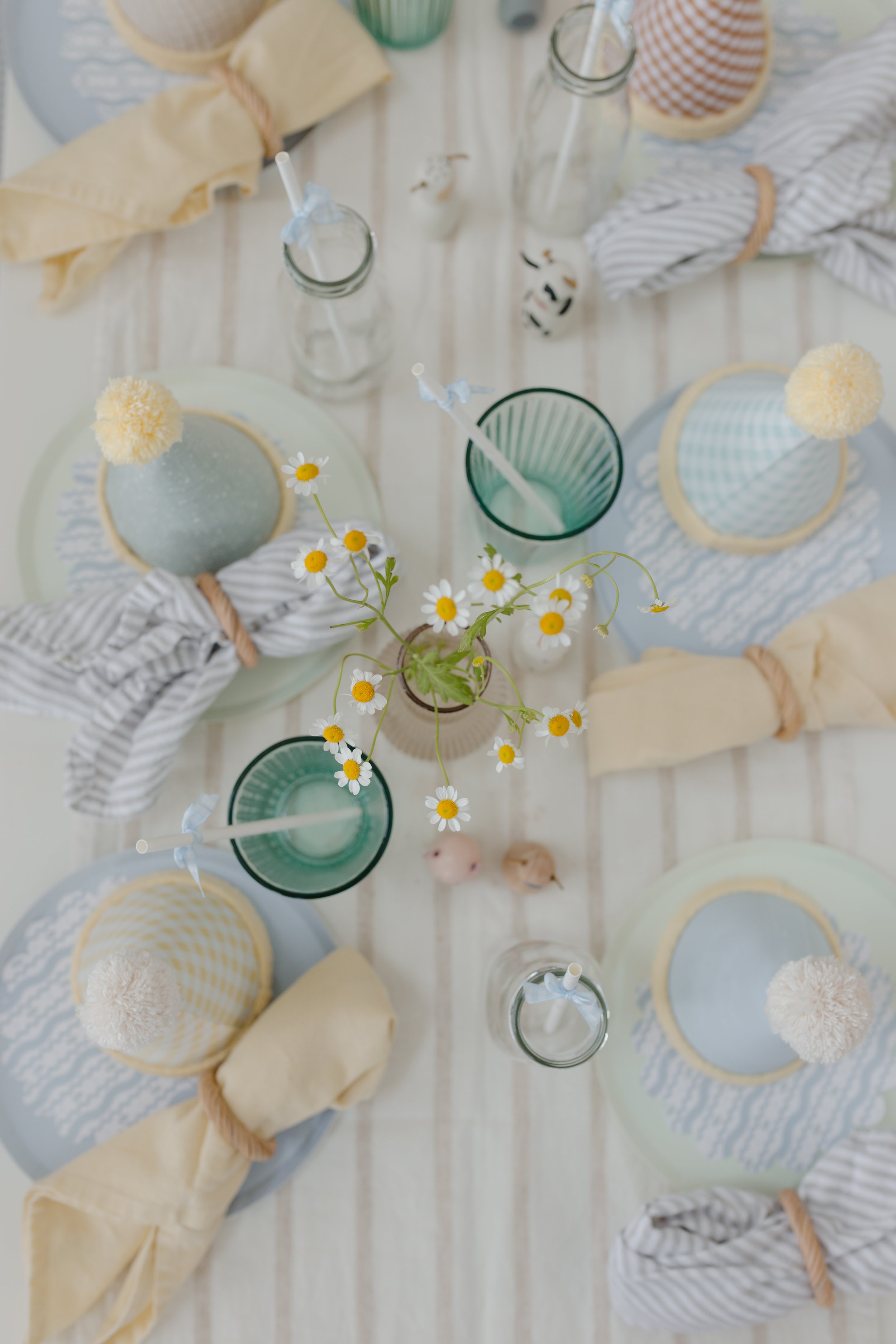 Скорее листайте дальше, мы собрали для вас посуду и декор в жёлтых и голубых цветах, чтобы вы тоже смогли оформить такой милый праздник.