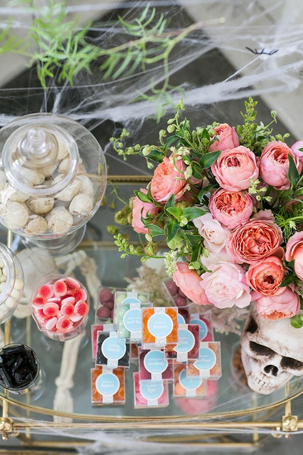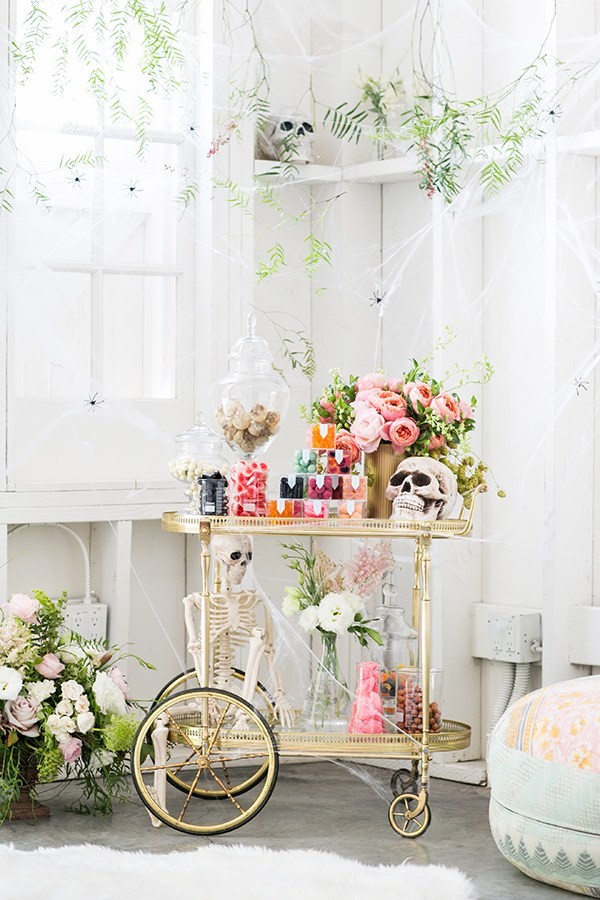 Эта DIY-тележка со сладостями — идеальное украшение для Хэллоуина! В ее основе обычная барная тележка, которую декораторы из Sugar and Charm украсили различными мелочами, ассоциирующимися с этим праздником: от мини-скелетов до паутины. И, конечно же, под завязку загрузили ее вкусными конфетами! А если ваша вечеринка для взрослых, то не лишним будет добавить коктейли.Декораторы ориентировались на создание праздника для взрослых детей (и их родителей), поэтому гамма получилась пастельной, изысканной, не без налета роскоши!Тележка уже была, осталось добыть конфет! Эден обратилась к коллегам из Sugarfina, которые держат огромный магазин сладостей. Они привезли невероятный ассортимент конфет: от мозгов зомби до лакричных сердечек. Чтобы угощения было удобно брать, их разложили по мерным стаканам, колбам, вазочкам и коробочкам. Оформление сладкого стола Эден решила выбрать приятную гамму в противовес жутким украшениями. Тележку украсили букеты свежих цветов, на фоне которых даже скелеты и черепа смотрелись очаровательно. Что же касается заднего плана — его украшала паутина, в которую вплели паучков и веточки зелени. Получилась довольно свежая и весенняя картина! Что купить?— Жуткие наполнители для ваз. Здесь декораторы использовали маленькие черепки, которые насыпали в стеклянные емкости. — Мерные стаканы. Смотрятся довольно необычно, превращая вашу тележку в алхимический стол! В них можно подавать не только конфетки, но и напитки. — Конфеты. Подавайте большой ассортимент, не только с символами Хэллоуина, но и просто красивый мармелад разных цветов. — Паутина. Для оформления этого уголка ушло 3 пачки декоративной паутины для Хэллоуина.Барные тележки полезны круглый год! Этот аксессуар пригодится для создания абсолютно любого праздника! Главная их прелесть (помимо чудесного вида) – мобильность. Их легко можно отвезти, чтобы пополнить новыми закусками или свободно перемещать во время фотосессии.Кроме того, они идеально подходят для размещения напитков для родителей на детском дне рождения. В другое же время ей можно найти множество применений: - полочка для полотенец в ванной; - столик для комнатных растений; - прикроватный столик; - и многое другое.Как украсить все паутиной Ни одна вечеринка на Хэллоуин не обходится без паутины и пауков! Она превращает повседневные привычные вещи в атмосферный реквизит. Чтобы сделать такие же красивые паутинки, как на фото, воспользуйтесь праздничным реквизитом – специальной бутафорской паутиной. Для реалистичного вида полотно нужно растягивать до тех пор, пока оно не станет невесомым и полупрозрачным. Паутинку можно закрепить с помощью клея-пистолета или кнопок, но используйте как можно больше точек соприкосновения, чтобы полоски не разлетались от дуновения воздуха и не слипались между собой.Если паутина получилась слишком тонкой, приклейте аккуратно второй слой, хорошо его закрепив. Можно добавить веточки зелени и паучков, но помните о том, что они должны быть легкими – полотно очень хрупкое.Не забывайте, что привлекательнее всего конфеты выглядят в прозрачных емкостях – так гостям сразу видно все разновидности сладкого, а ваша тележка будет очень яркой!Источник: https://sugarandcharm.com/