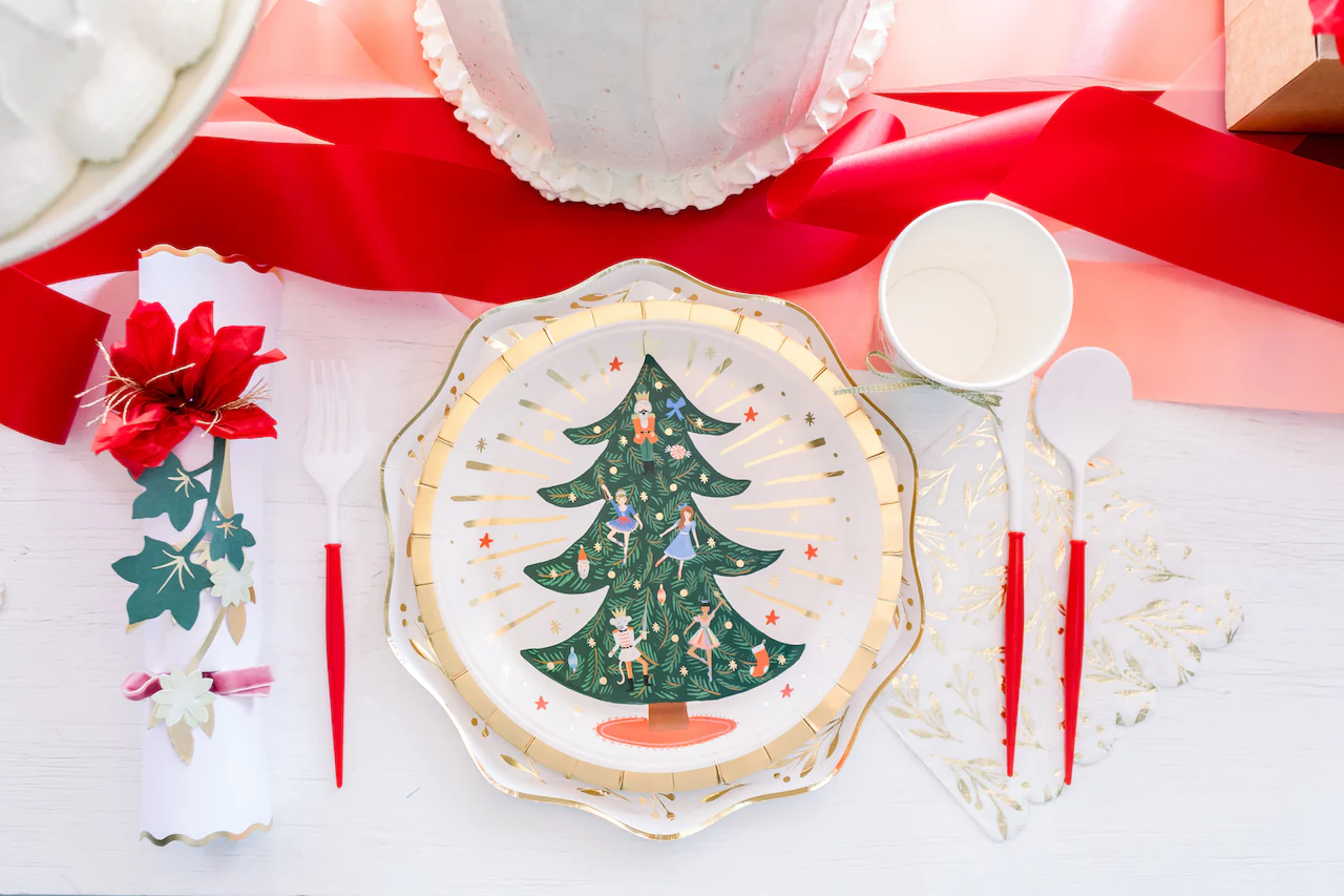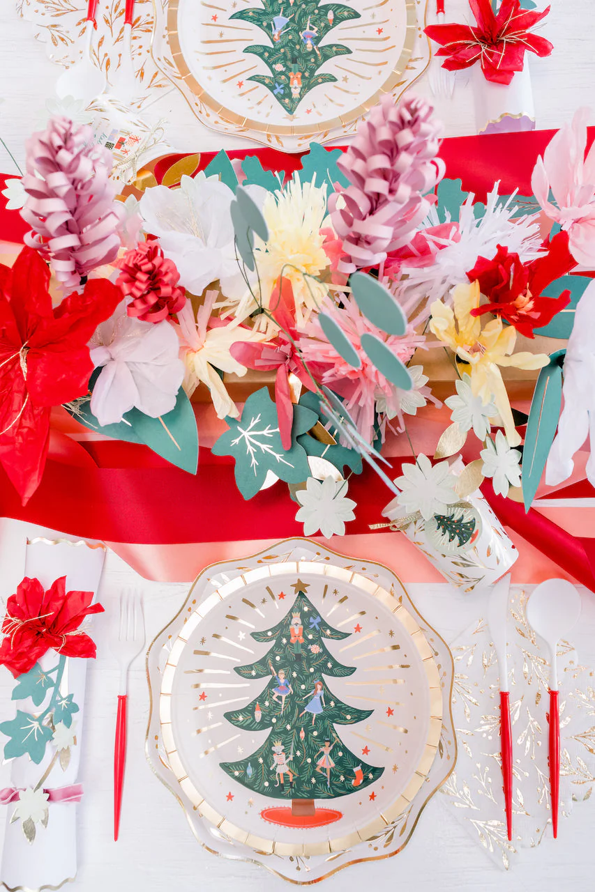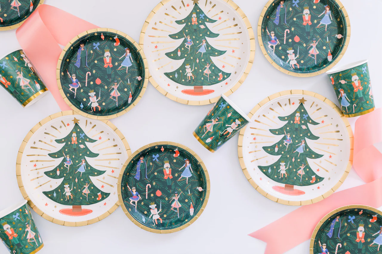 У нас большой выбор посуду, в том числе и тематической, с Щелкунчиком! Вы можете сделать тематическим каждый элемент или выбрать нейтральную посуду и добавить тематические элементы. Например, расставить фигурки балерин и щелкунчиков, барабаны, пуанты.