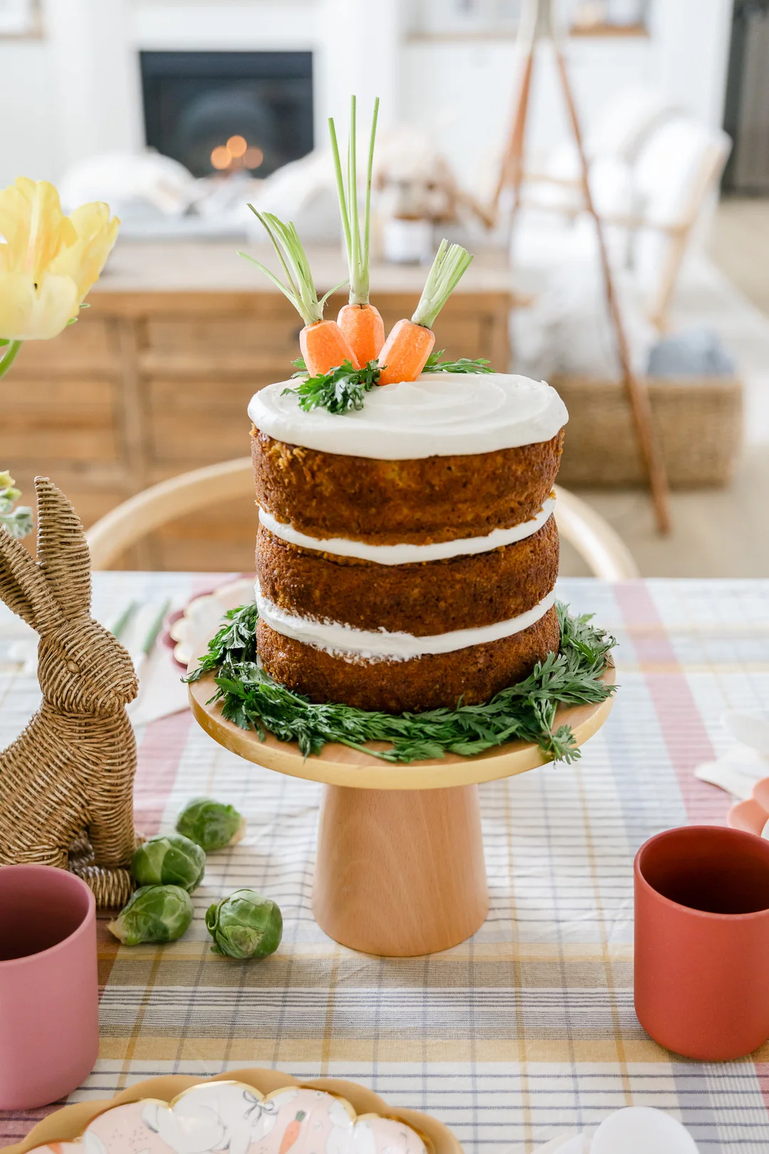 Если вам хочется чего-то более масштабного, а не просто закуски, классический морковный торт никогда не разочарует. Но удивите всех, украсив его морковками, этот торт станет прекрасным центральным украшением пасхального стола.