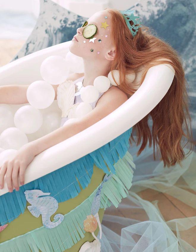 Если ваша малышка любит подолгу купаться и расчесывать свои длинные волосы — то кажется, у вас дома живет русалочка! Конечно, день рождения должен быть соответствующим, но мы обо всем позаботились — декор и посуда Meri Meri помогут вам превратить дом в дно океана: с ракушками, нарвалами, морскими коньками и другими его обитателями.