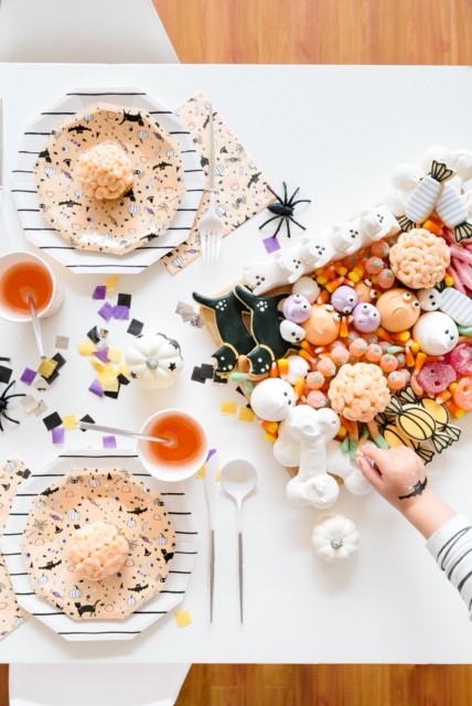 Удовлетворите своего внутреннего сладкоежку на вечеринке, полной разнообразных угощений! Хэллоуин — это праздник зефирных призраков, печенек-кошек и желейных тыкв.Если закрыть глаза и представить, какие праздники нам нравились в детстве, то скорее всего, в голову придут классные костюмы, множество украшений и конфеты, много конфет! Это чудо из детства воплотила в жизнь Роял Циглер из «But First, Party!». За основу Роял взяла коллекцию Фокус-Покус от Daydream Society — веселые картинки с котами. Летучими мышами и другими классическими образами праздника вдохновили ее на создание другого декора. Посуду дополняли сверхъестественно милые десерты, волшебные существа, а традиционную гамму разбавили благоухающие цветочные композиции и пастельные элементы.Несмотря на то, что вечеринка состояла, казалось бы, только из сладостей и светлого оформления, в ней были акценты, намекающие на «темную» сторону праздника – например, черные, оранжевые и фиолетовые оттенки. Белый лофт, в котором проходила вечеринка был идеальным фоном для всех этих ярких украшений! Посмотрите, как классно дополняют гирлянды-тассел нежный обеденный стол! Цветочная композиция заняла центральное место на столе. Классические оттенки Хэллоуина — оранжевый и фиолетовый были представлены: розами, бархатцами, лавандой, лютиками и другими цветами.Ни одна вечеринка в честь Хэллоуина не обходится без хотя бы нескольких тыкв. Мини-тыквы с этой вечеринки были украшены самым простым способом — переводными татушками! Просто переведите их на предварительно окрашенные тыковки, и ваше нестандартное украшение стола готово.Любой ребенок будет визжать от восторга, увидев кексики в форме мозга и блюдо, заполненное сладкими черными кошками, призраками и костями. Простые элементы декора, такие как пауки, конфетти и маленькие тыквы, добавляют сервировке сезонный колорит.Оформить такую тарелку проще простого! Подберите тематический мармелад с тыквами, зубами, черепками и другими хэллоуинскими ужасами, а также обязательно закажите печенье с героями праздника. Чем больше сладостей – тем сильнее.Не забудьте про тематические костюмы! Гостей можно заранее предупредить о дресс-коде или же приготовить аксессуары для праздника: шляпы, ободки и различные накидки.Простой аналог аквагрима, обожаемого детьми – переводные татушки! Это определенно добавит элемент веселья в ваш праздник.Еще один оранжевый акцент на вечеринке, помимо посуды, воздушных шаров и цветов – апельсиновая содовая. Подумайте, какие простые продукты могут стать тематическими за счет своего цвета? Оформить хэллоуинский стол не так уж и сложно!Эта вечеринка наглядно демонстрирует, что вам не потребуются сложные декорации для шикарного Хэллоуина. Все, что вам нужно, это посуда с забавным принтом, простые столовые приборы, яркое конфетти и блестящие паучки, которых легко купить в магазине для праздников.Посмотрите на этот паучий пиорг! Здесь четыре слоя бисквита и крема, а его края украшают съедобные глаза. На верхушке примостились паучки из безе – такие легко сделать своими руками, а вот лапки пластиковые.Не забудьте дополнить декор тематическими салфетками, леденцами и другими мелочами, которые впишутся в вашу гамму. Источник: https://www.marthastewart.com/