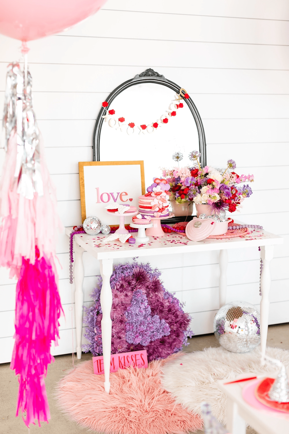Делимся с вами еще одним Днем святого Валентина, организованным мамой для детей! Ведь это отличный повод устроить детишкам веселую мини-вечеринку среди красочного декора. Оформление было минималистичным: сладкий стол с красивой посудой и пышная гирлянда на стене, чтобы разнообразить фон. Зато угощения были тем еще произведением искусства — посмотрите на этот гигантский макарун-торт! Сладости расставили в уголке на столике с зеркалом, напоминающим будуар. Здесь были гирлянды, шары, конфетти и цветы! На столе была шикарная посуда от Мери Мери: тарелочки в форме губ, нежные салфетки Эко, а еще множество сладостей, которые рассыпали прямо по поверхности стола! Сладости, ставшие частью сервировки, это шикарно! А представьте, как обрадуются дети, когда увидят такое обилие вкусноты. И да, 14 февраля не только для девочек, но и для мальчиков! А как иначе такой праздник обойдется без очаровательных маленьких купидонов? :) Источник: houseoffete.com