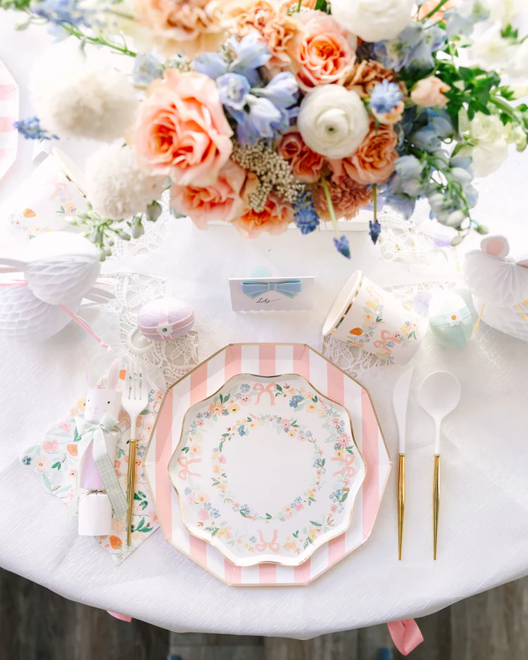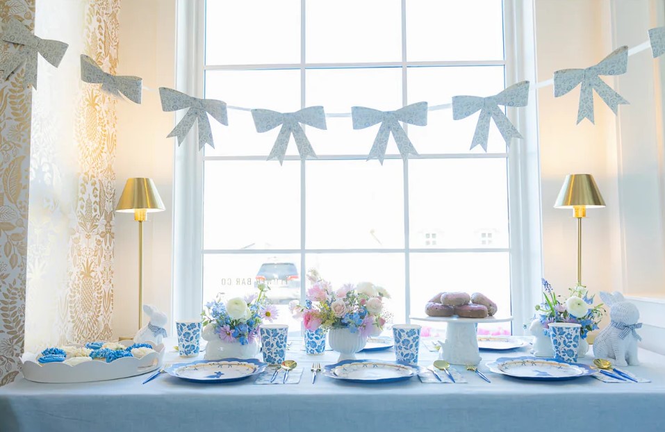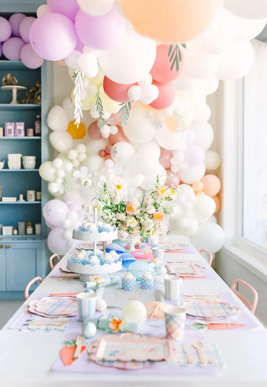 Лучшие весенние сервировки стола полны цветов, поэтому пасхальная вечеринка в цветочном стиле — еще одна замечательная идея для Пасхи. Чтобы воплотить эту очаровательную тему, начните с цветущего букета в центре стола. Затем просто добавьте несколько весенних цветочных украшений к гирляндам из шаров или украсьте куличи живыми цветами! Будет потрясающе, поверьте.