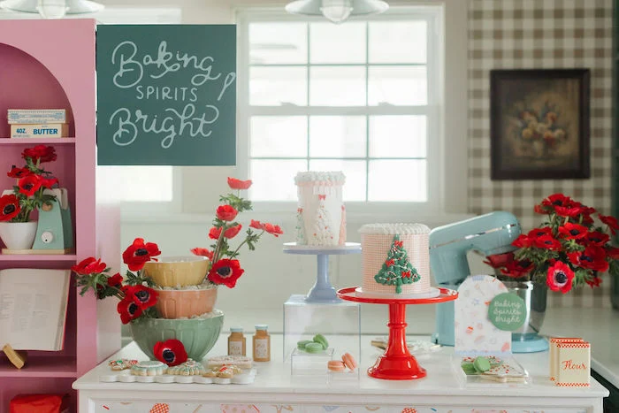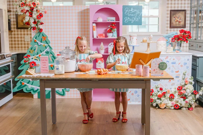 Центральной темой торжества стал кулинарный мастер‑класс — девочки с восторгом осваивали искусство создания новогодних сладостей. На полках аккуратно расставили красочные пакеты с ингредиентами, превратив их в часть праздничного декора.