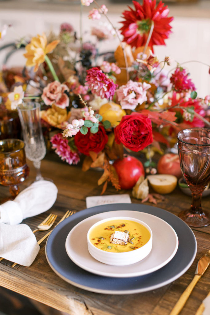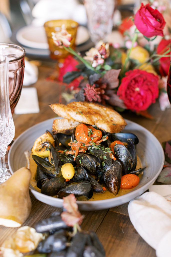 Еда была самой подходящей для уютного осеннего праздника! Начинали с тыквенного супа-пюре, затем гостей угощали мидиями и индейкой.