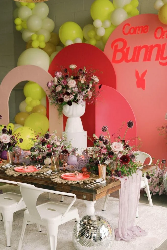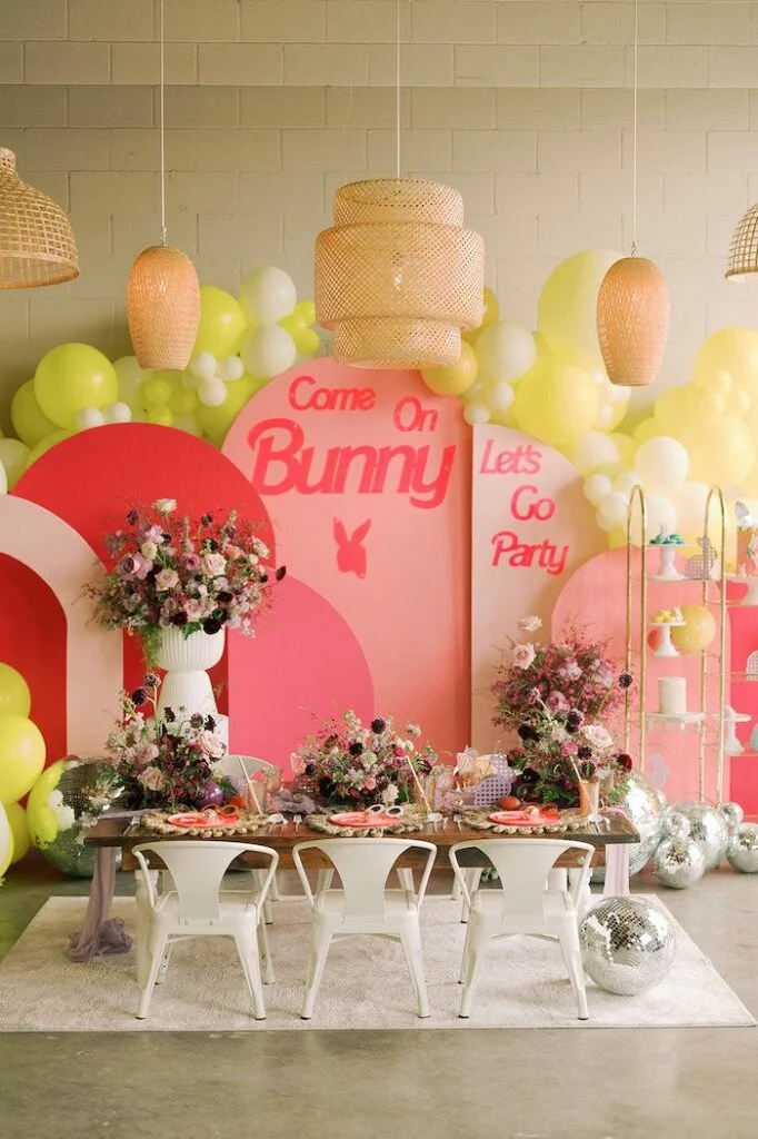 Вот прекрасная идея не только для Пасхи, но и для весеннего девчачьего дня рождения! Особенно, если ваша дочка обожает кукол и зайчиков. Декораторы смешали две тематики, и получилось нечто невероятное. Цвета Барби из 90-х, ностальгическая атмосфера, множество живых цветов и заячьи ушки в разных их проявлениях! Давайте посмотрим, что получилось у наших коллег!