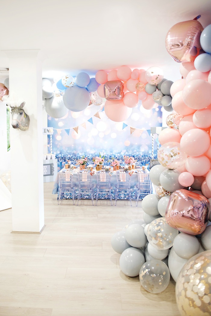 Цирковой день рождения в пастельной гамме подойдет и мальчикам, и девочкам! Посмотрите, какую красоту можно сделать с помощью нежной посуды, шариков и кастомного декора. Для нашей именинницы приготовили огромный тортик, украшенный свежими розами и пряничными лошадками. В декоре было очень много цветов, которые не только скрасили интерьер, но и добавили празднику нежный аромат. В сервировке использовали сочетание голубого, розового и золотые акценты. Сюда отлично подойдет коллекция Эко от Мери Мери, в которой есть посуда в такой же гамме. Ссылки на нее мы оставим под статьей! На стол постелили нейтральную скатерть, чтобы не отвлекать от основного декора, и расставили стильные прозрачные стульчики. Угощения сделали гамме в праздника, а печенье в цирковой тематике: билетики, шатры, карусели. Посмотрите, какую пышную обстановку создают гирлянды из воздушных шаров! Тут мы с уверенностью можем заявить — много их не бывает :) Кроме того, декораторы распечатали огромные фотофоны для стен, чтобы все пространство было в стиле вечеринки. Источник: karaspartyideas.com