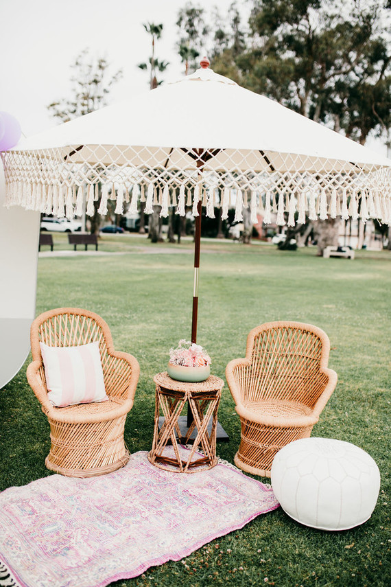 А одна из фотозон была украшена огромными занавесами ручной работы в стиле макраме. Без него никакого бохо и быть не может!