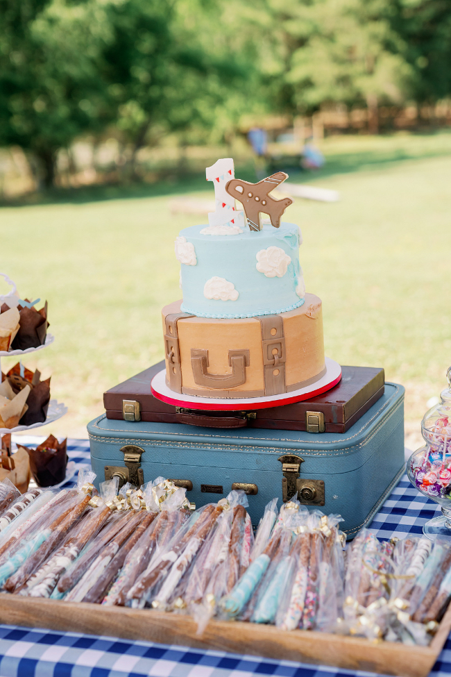 Нежный день рождения в честь первого годика — мы обожаем такие праздники, не только рассматривать на фото, но и организовывать :) В первый день рождения у ребёнка пока ещё нет вкусов, поэтому тематику выбирают родители или декораторы. Кстати, оформление с самолётиками очень частый запрос для маленьких мальчиков. Нежный голубой цвет небес, белоснежные облака — разве это не потрясающее нежное сочетание? Для памятных фото организовали большую фотозону с нарисованным самолётиков и большой гирляндой из воздушных шаров. Посуда была самая обычная, её подбирали по оттенкам, а не по необычным формам. Зато на каждой тарелочке гостей ждал вот такой очаровательный чемоданчик из бумаги. Посмотрите на этот тортик! Если верхний ярус изображал небо, то нижний был сделан в стиле чемодана с ремешками — получилось здорово! Да и сам торт поставили на ретро-чемоданы. Классная атмосфера благодаря совсем простым приёмам. Если вы мечтаете о чудесном дне рождения для сына или дочки — мы с радостью создадим для вас нежную сказку и окружим малыша или малышку красотой. Источник: inspiredbythis.com