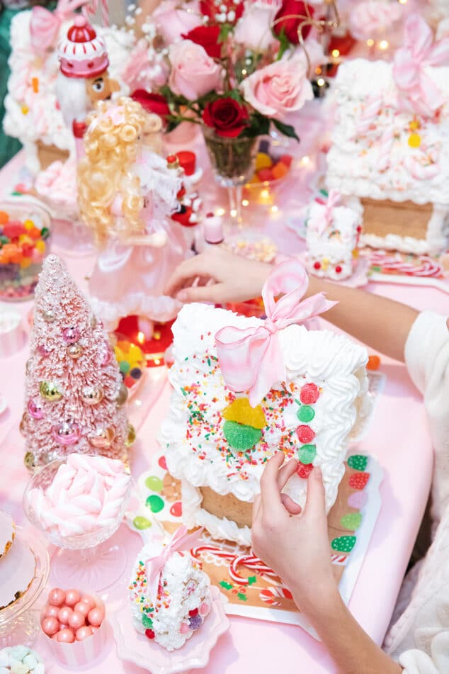 Вечеринка по украшению пряничных домиков — это отличный способ провести предновогодний период! Пусть дети пригласят своих друзей на небольшое чаепитие либо 31 декабря всей семьей попробуйте собрать имбирные домики! Купить их можно в интернете и во множестве супермаркетов. В наборе будут имбирные стены и крыша, а для украшений возьмите крем, посыпки, мини-безе, шоколад и мармелад. Украсить дом в стиле волшебной сладкой страны очень легко! Во-первых, украшениями станут сами сладости — просто разложите их в тарелочки или прямо на скатерти, а во-вторых, у нас множество посуды и гирлянд в таком стиле. Есть даже шарики-леденцы! Если вечеринка будет для приглашенных гостей, не забудьте раздать всем красивые приглашения! Если с украшением домика дети справятся сами, то сборкой лучше заняться взрослым. Также помогите нанести крем из кондитерского мешка на крышу. Для украшения же самого стола можно использовать фигурки Щелкунчика — ведь именно с ним ассоциируются такие сладкие праздники! Кстати, у нас есть одноименная коллекция, которая вам обязательно понравится. Добавьте букеты цветов, мармеладные елочки и гирлянды, чтобы внести завершающие штрихи! Смотрите декор под статьей, чтобы оформить такую вечеринку и пишите нам, мы обязательно поможем! Источник: pizzazzerie.com