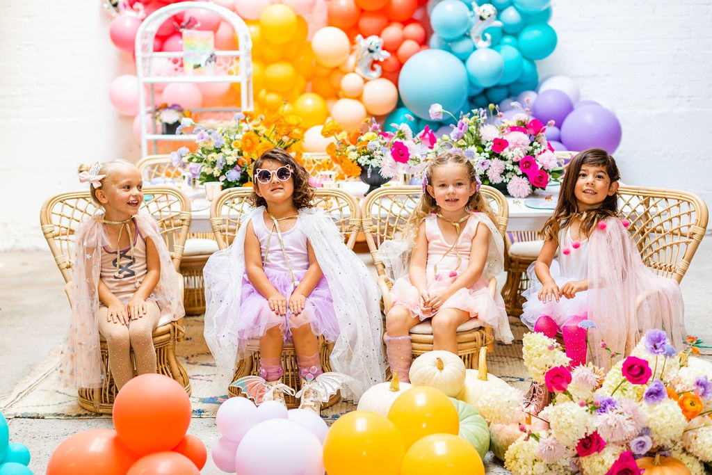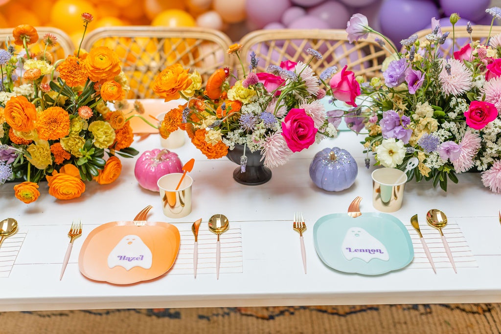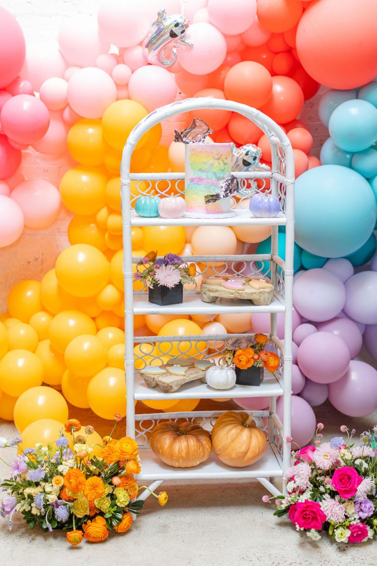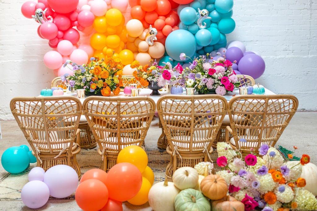 Радужный Хэллоуин звучит как что-то невозможное, но посмотрите на это фото! Декоратором удалось сохранить дух праздника, при этом украсив все пространство яркими красками! Живые цветы, шары, разноцветные тыквы и шикарное сочетание посуды. Давайте посмотрим! Девочки получили стильные приглашения в стиле омбре, которые звали их на крутую вечеринку к подруге! Первое, что бросалось в глаза, это огромная гирлянда из всех цветов радуги с акцентами из фольгированных призраков. Крутая гирлянда — залог успеха! Но и от стола было не оторвать глаз! Его украсило множество букетов цветов, разноцветные тыковки с блестками и чудесная посуда Мери Мери. Позади стоял плетеный стеллаж в стиле бохо, на котором были праздничные угощения. Для девочек испекли гигантский радужный торт с черной карамелью, а еще печенье в виде пастельных призраков. Девочек попросили прийти в фатиновых юбочках, а на празднике им выдали стильные фатиновые накидки с блестками! Источник: beijosevents.com