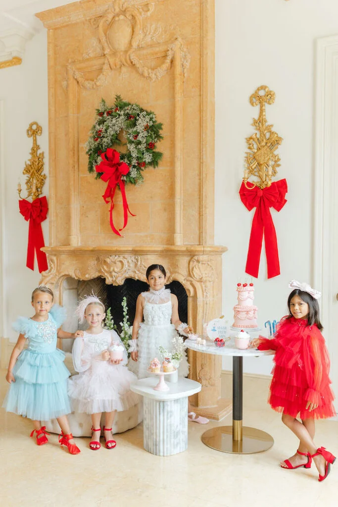Все приехали в прекрасных платьях и туфельках и фотографировались на фоне огромного камина, украшенного венком и бантами. Вы тоже почувствовали атмосферу Рождества из Щелкунчика? Кажется, сейчас Мари и Фриц получат свои долгожданные подарки около ёлки!