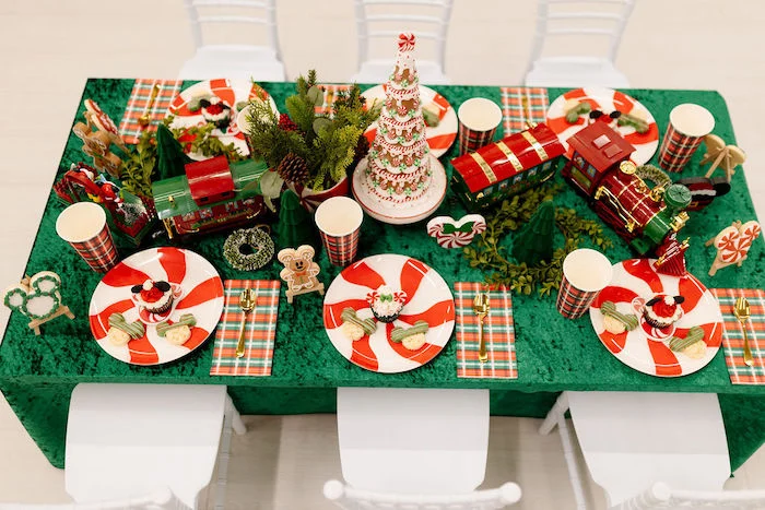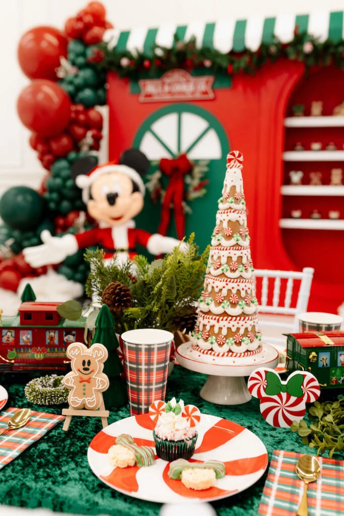 Эта вечеринка, оформленная в традиционной красно-зелёной цветовой гамме с милым декором в стиле Микки и вкусными имбирными пряниками, станет настоящим волшебным праздником для вас и вашей семьи!