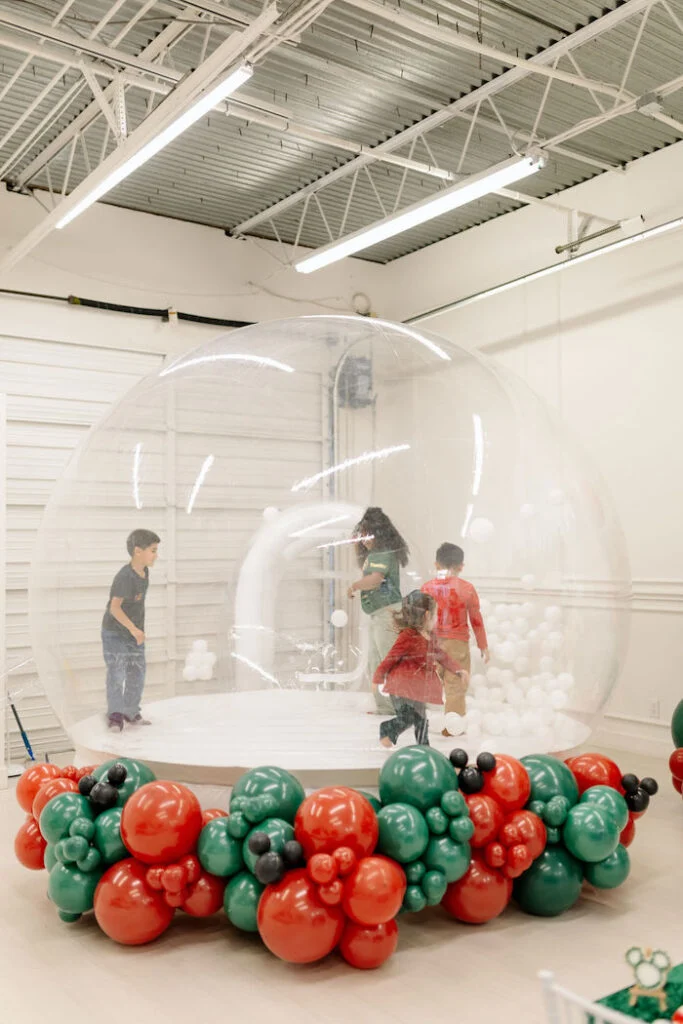 А батут стал ещё более необычным местом! Его оформили в виде стеклянного шара, внутри были даже воздушные шары, которые имитировали снег. Честно говоря, мы бы тоже с радостью забрались в такой шар попрыгать!
