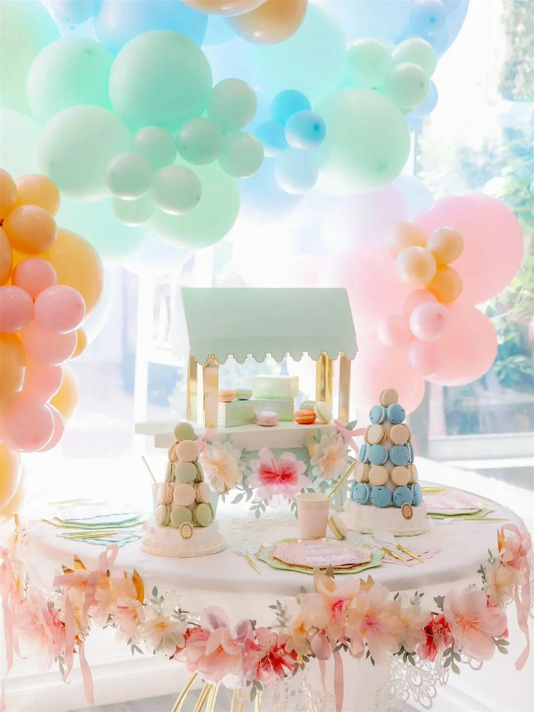 Кто хочет сладких пирожных макарон? Эта вечеринка в парижском стиле, вдохновленная роскошной чайной Ladurée, — одна из наших любимых. Она идеально подойдет для любой маленькой девочки, которая любит сладости и чаепития. Для полного оформления парижской вечеринки выберите фисташково-зеленые украшения и красивые столовые приборы пастельных тонов.