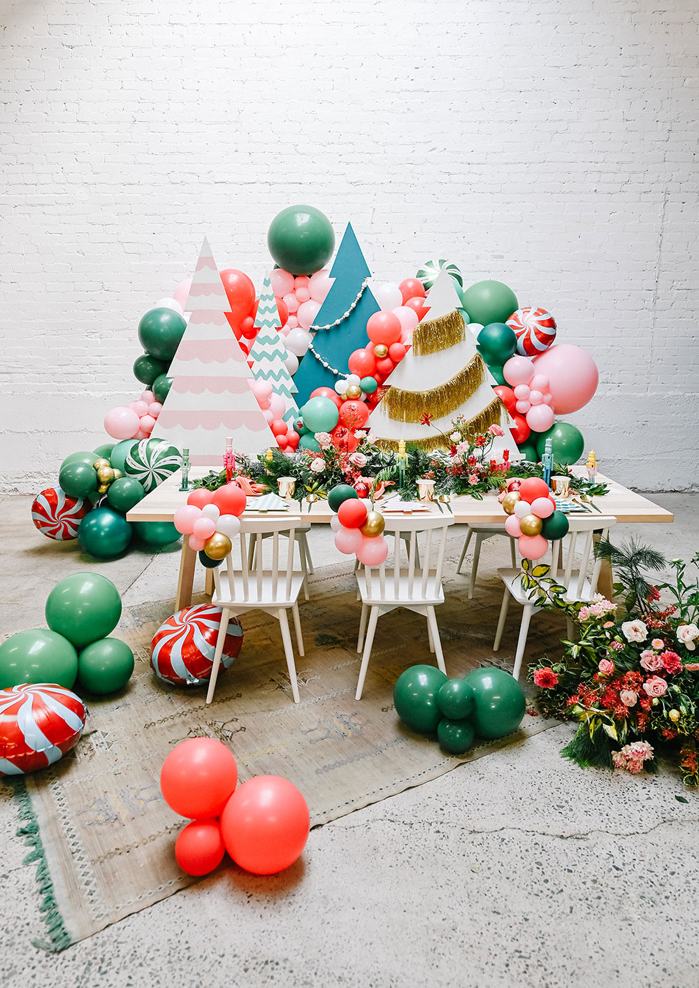 У нас есть свежая идея для новогодних оформлений! Почему это Рождество назвали современным? А потому, что декораторы совсем уж отошли от традиционных моментов, а точнее, трансформировали все элементы на современный лад. Например, гамма. Хоть мы и видим тут красные и зеленые тона, но так же они добавили и много дополнительных цветов и пастельных оттенков. Кроме того, в декоре очень много живых цветов, которые мы привыкли видеть на весенних и летних вечеринках, но в последние годы все чаще они встречаются при оформлении Рождества! Но сложно не разгадать в этом декоре новогоднюю вечеринку, ведь задний план украсили разноцветные елочки из картона! Такую фотозону легко сделать самостоятельно, а смотреться она будет эффектно! Каждую можно украсить особым узором, мишурой, дождиком или игрушками, а фон — гирляндами и композициями из воздушных шариков. Тележки для еды и напитков — фаворит декораторов в последние годы! И не зря, ведь они могут быть в разном стиле и наполнены разнообразным декором, дополняя праздник. Источник: 100layercake.com