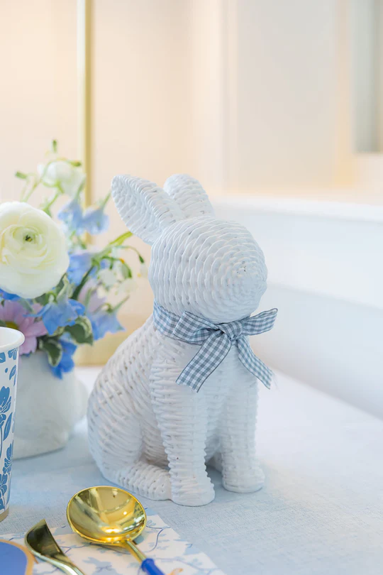 Добавьте в интерьер нейтральные украшения в виде зайцев или цыплят. Например, статуэтки из фарфора или вот такие милые плетёные!