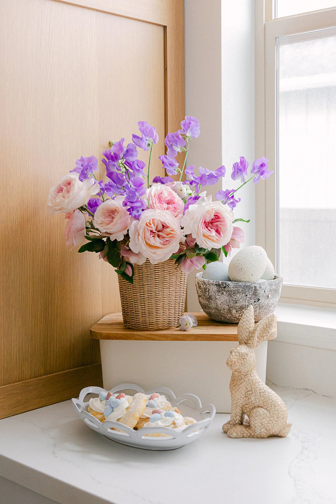 Мы также рекомендуем использовать цветы в оформлении прихожей. Добавьте пионы к пасхальным венкам или повесьте цветочную гирлянду у входной двери — цветочные акценты создадут теплую и гостеприимную атмосферу в вашем доме.