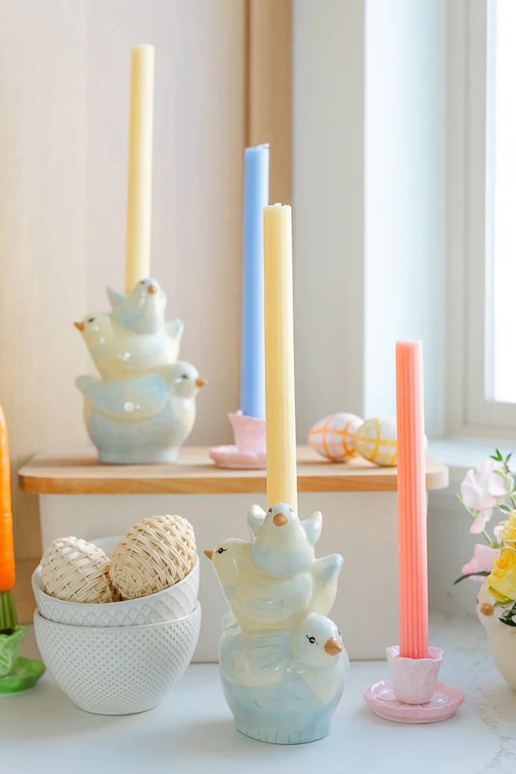 Конечно, яркие свечи тоже создадут особое настроение! Ведь скоро уже тепло, растает снег и хочется привнести в дом красок. Посмотрите на эти роскошные свечи Мери Мери — мы от них в восторге. Расставьте их на кухне или в столовой по подсвечникам среди живых цветов.