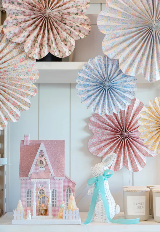Очень просто преобразить пространство можно с бумажными вертушками! Повесьте их под потолком или на стены — по нашему опыту бренд Meri Meri делают самые милые вертушки!