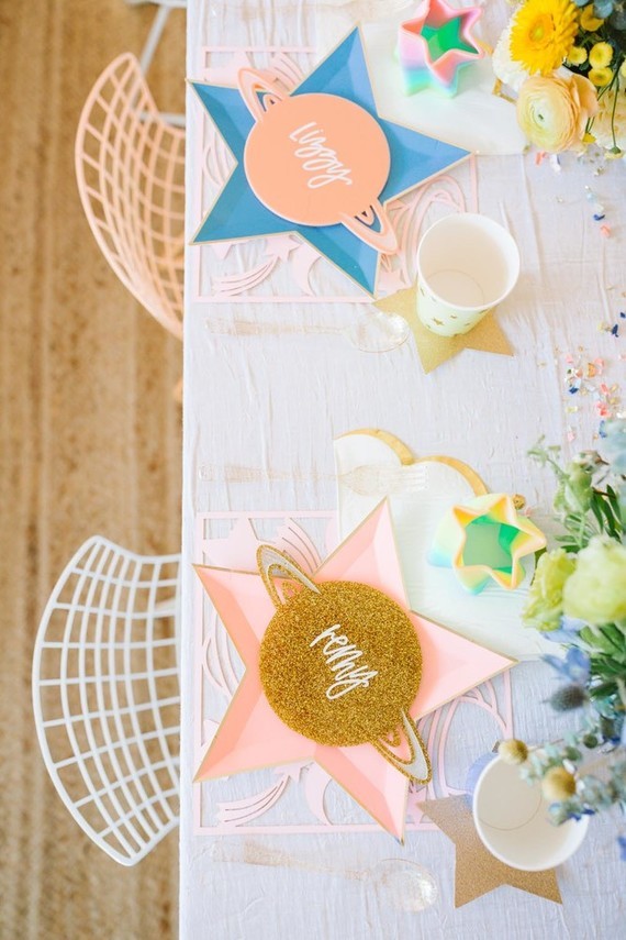 Как вы себе представляете космическую вечеринку для девочек? Конечно же, это много звезд, планет и разноцветных ракет, взлетающих ввысь. Если для мальчиков выбирают преимущественно темную цветовую гамму, то маленьким принцессам хочется самые яркие праздники. Хотим показать вам классную вечеринку, которая стала интересным миксом двух тематик: космической и мультяшной, с героями из «Истории игрушек», любимого мультфильма именинницы. А что еще можно пожелать в 2 годика?Декораторы постарались добавить как можно больше разных воздушных шариков для пышной праздничной атмосферы. Больше всего внимания привлекала шикарная гирлянда над камином – разноцветный млечный путь с золотыми фольгированными звездочками, украшенный перламутровым дождиком. Малышка Пиа большая фанатка Базза Лайтера, но цветовая гамма его костюма никак не отразила бы игривый характер девочки, так что ее мама решила добавить как можно больше веселых оттенков: синий, розовый, оранжевый, белый.Пастельные цвета хороши тем, что можно сочетать все и со всем – результат будет отличным! В украшении поучаствовала коллекция Jazzy Star. Яркие тарелки-звездочки сыграли роль акцентов на фоне пестрых, но очень нежных букетиков цветов и светлой скатерти. У каждого маленького гостя была своя цветная рассадочная карточка в виде планеты с кольцами и радужная пружинка в виде звездочки – помните такие? Вместо привычного конфетти по столу рассыпали крошечные лепесточки цветов!На столе для напитков детишек ждали разноцветные и полезные смузи в высоких бутылочках, а кэнди-бар был оформлен на комоде с полочками – каждая закуска на своей космической станции.Посмотрите, какие красивые капкейки с ракетами получились у кондитеров! Тут тоже не обошлось без цветочного декора, везде лежат головки садовых цветов и лепестки. Праздник продолжился и во дворе. Тут малышей ждали такие же яркие украшения и веселые игры. Например, станция декора, где можно было украсить свою маленькую деревянную ракету. Вечеринку посетили герои любимого мультика и без устали придумывали развлечения для гостей. В конце всех ждали шикарные космические тортики, украшенные пастельными планетами – выглядит крайне аппетитно! Источник: http://www.100layercakelet.com/