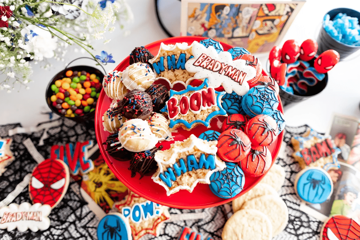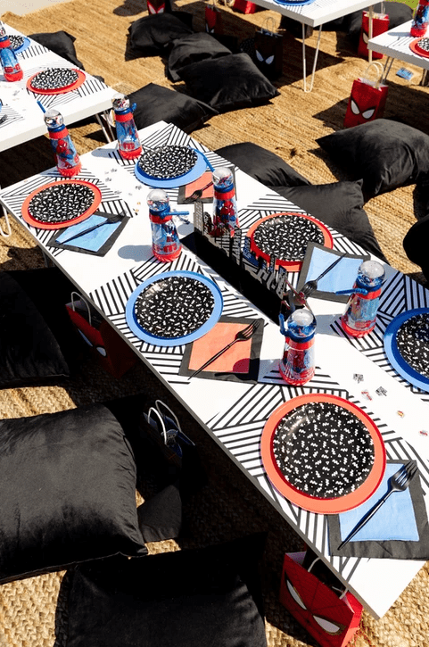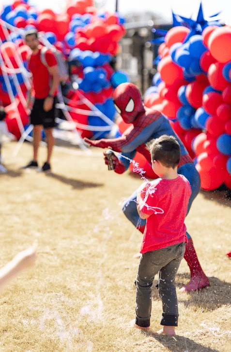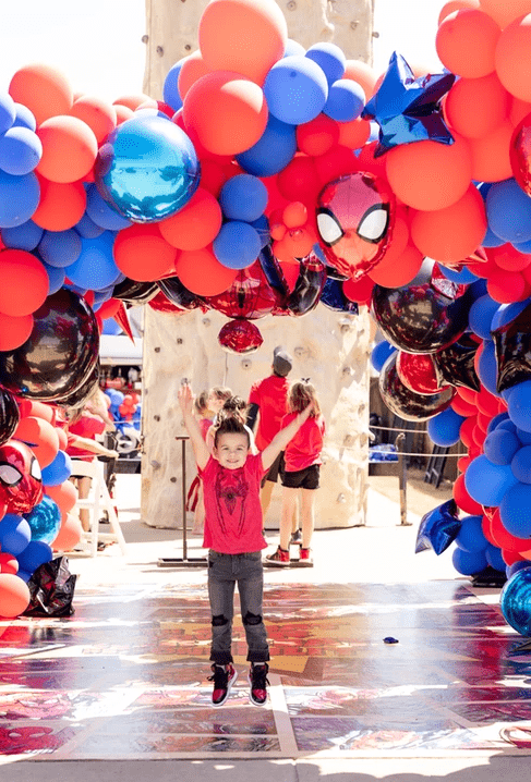 У Питера Паркера миллионы поклонников по всему миру — а среди них и взрослые мужчины, и маленькие мальчики :) У нашего именинника героя любит вся семья! Поэтому они с большим воодушевлением подошли к оформлению праздника для ребенка, и сделали его очень запоминающимся! Возле дома всех встречала вот такая огромнейшая композиция из шаров в цветах Питера — синих и красных! Во дворе именинника и его друзей ждал накрытые столики с подушками и огромный батут, тоже украшенный шарами — на этом празднике их было несколько сотен. Возле каждой подушки гостя ждал пакетик с подарками! Ну а вот самое долгожданное угощение на празднике — трехъярусный торт, украшенный паутиной, пауком и ночным городом. Также у кондитера заказали красивые тематические печеньки! Праздник был не только красивым, но и увлекательным! Вот такой огромной аркой гостей встречала зона скалолазания, где под присмотром инструкторов детишки могли представить себя Человеком-пауком на крыше небоскреба! А еще дети учились выпускать паутину :) Одной фотозоной на входе дело не ограничивалось, у входа в гараж оформили еще одну зону на 6 метров, где дети могли сделать крутые фотки на ярком фоне! Источник: modernpartycompany.com