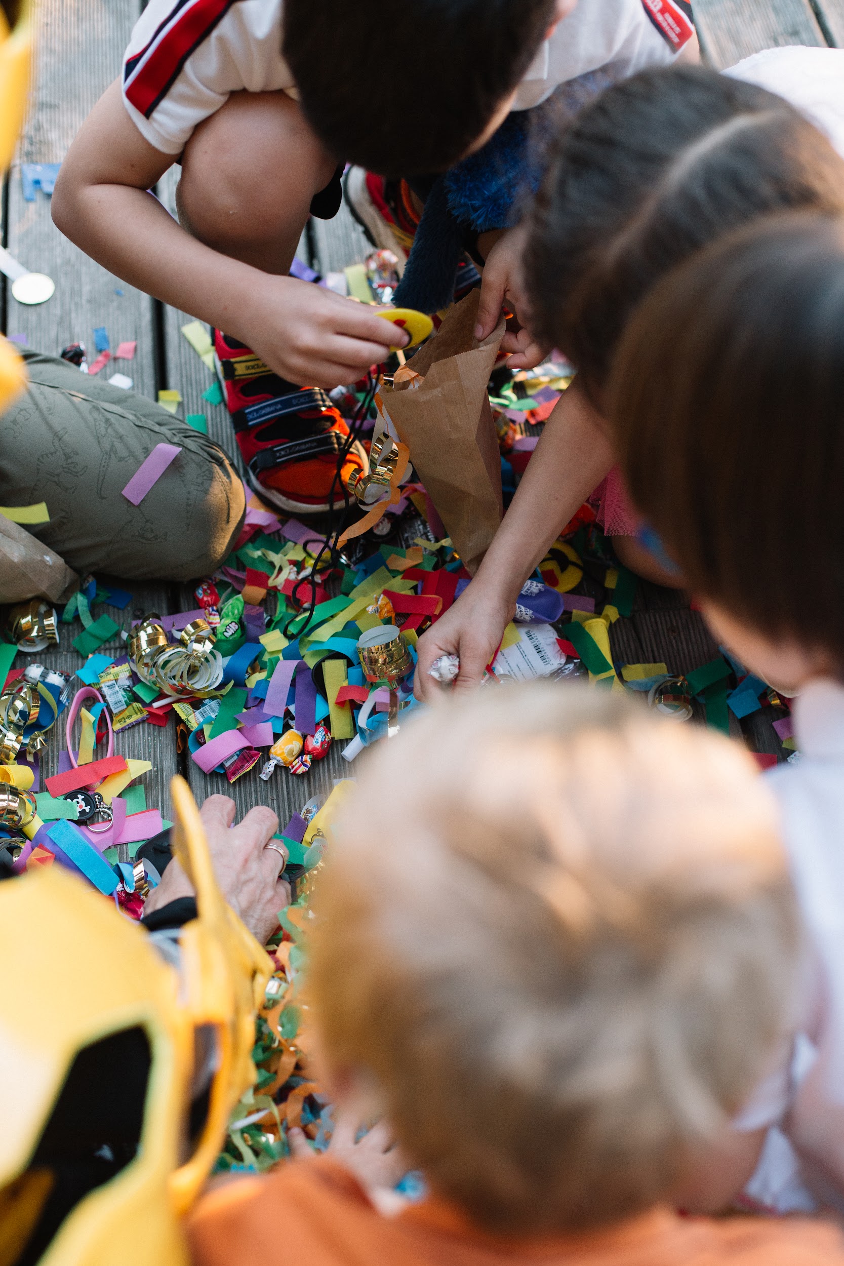 Нет ничего круче, чем праздник в любимой тематике, так еще и под открытым небом! Эта вечеринка для маленького Роберта проходила в ресторане Цыцыла. Стол мы сервировали внутри, а фотосессии, игры и анимационная программа проходили на улице — рядом большая зеленая территория. Мы оформили огромную фотозону, в которой даже стоял большущий трансформер из картона! Крутые фото мальчикам были обеспечены. Рядом стоял сладкий стол с угощениями в супергеройской гамме: красный, синий и желтый. Мы приготовили капкейки, печенье, торт и невероятные кейк-попсы! Все было ярким, красивым, даже жалко есть! Для сервировки мы использовали универсальные тарелочки, салфетки и стаканы Мери Мери из коллекции Beautiful Basics, а еще деревянные столовые приборы. Возле каждого места гостя ждала маска! Конечно, анимационная программа была в тематике праздника! Трансформеры развлекали детишек, проводя для них игры и конкурсы — никто не скучал. Самым интересным было, конечно, разбивание пиньяты! ... Из которой посыпались сладости и маленькие сувениры :) Ищите внизу декор, который поможет оформить такой же праздник. А если у вас есть другая идея — напишите нам, мы с радостью все продумаем и сделаем под ключ!