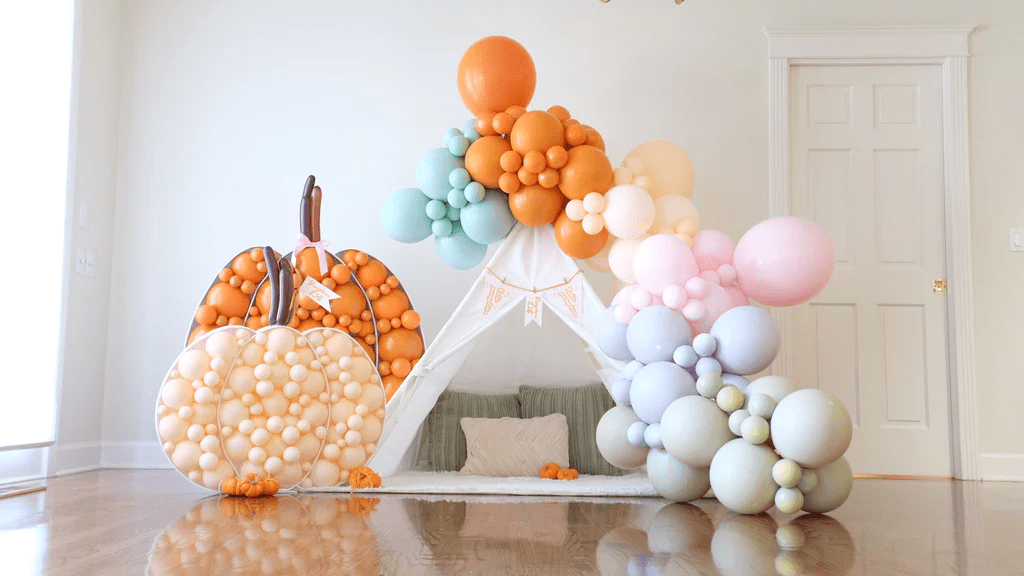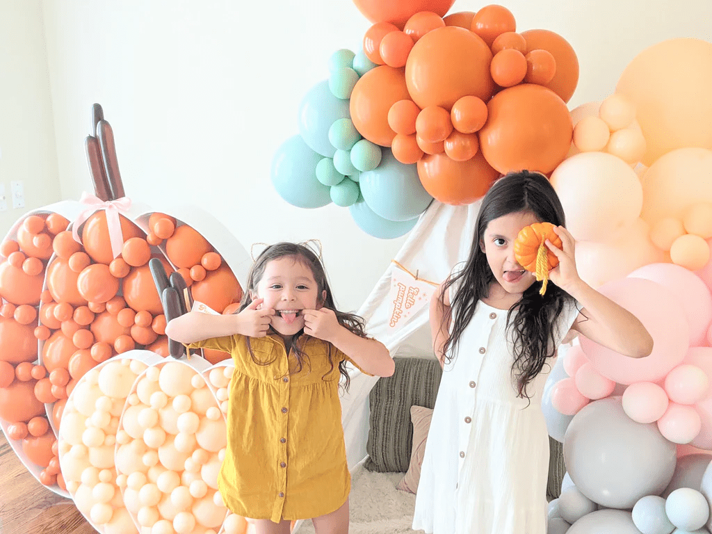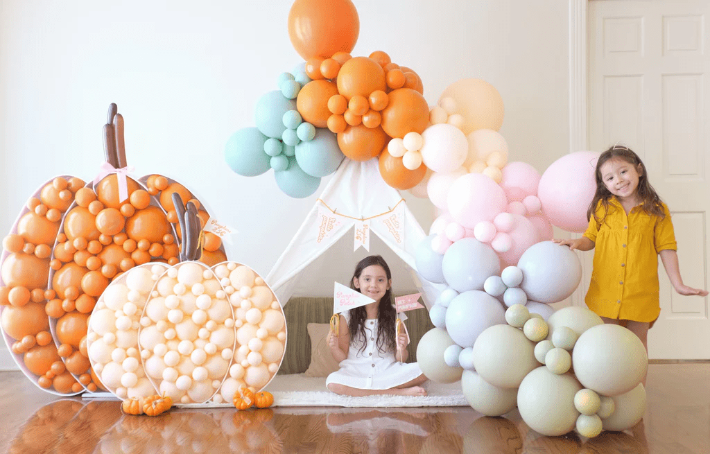 Вот такую шикарную фотозону сделала наша коллега из Австралии! Она устроила милую фотосессию для дочек и не стала разбирать инсталляцию, чтобы они могли играть в этом милом вигваме весь месяц. Фотозону украсили в стиле ярмарки — на каждой тыковке был ценник! Такие тыквы можно собрать дома самостоятельно — вам нужны листы ватмана, чтобы вырезать из них тыквы и приделать к ним бортики. Промежутки заполняются шариками разных размеров. А если вы не уверены, что выйдет так, как вы задумали — можете обратиться за помощью к нашим декораторам! Источник: ohitsperfect.com.au