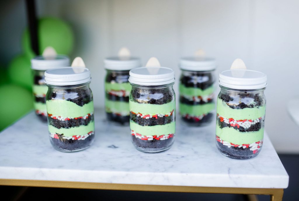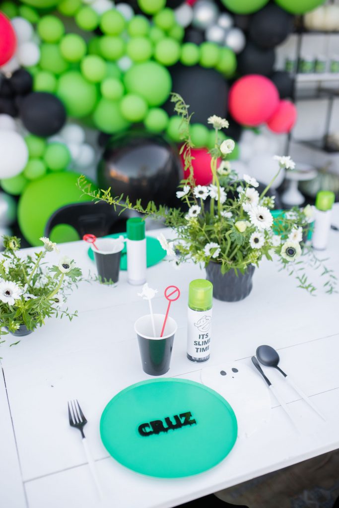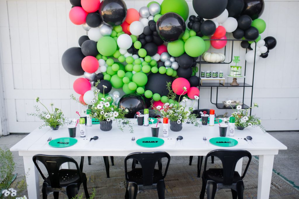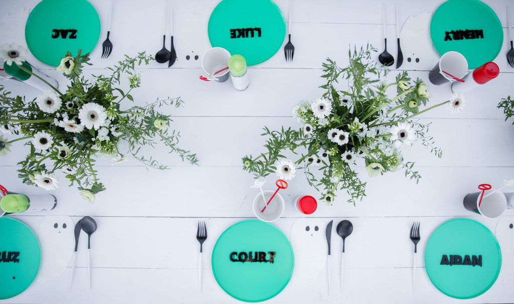Сервировка была минималистичной, но её дополнили авторскими элементами, например, мешалками для напитков, которые сделали на заказ, а ещё... Каждому подарили баллон с серпантином, чтобы друзья могли обливать друг друга разноцветными спреями!