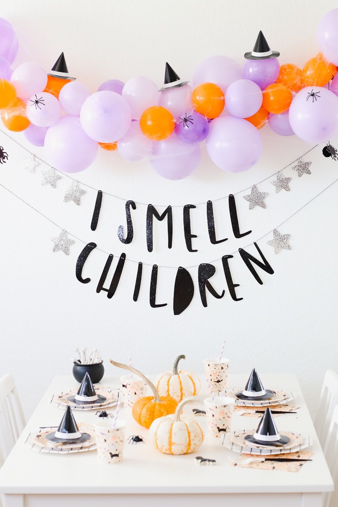 Помните старый фильм по ведьм с Сарой Джессикой Паркер? Декоратор этого праздника вдохновилась им и создала волшебную вечеринку для детей на Хэллоуин. Девушка решила использовать традиционную палитру, но в более нежных тонах: сиреневый, персиковый и оранжевый, а также черный и все это на белом фоне. В качестве фона она сделала роскошную гирлянду из шаров, украшенную шляпками, пауками и паутиной, а внизу повесила растяжку с надписью "Чую запах детишек". Стол украсила не только тематическая посуда, но и очаровательные маленькие тыковки и игрушечные паучки! Дети обожают переводные татушки! У нас их большой выбор и все абсолютно безопасны для нежной детской кожи! Смываются водой и никакой аллергии. Тематическое печенье — залог стильной вечеринки. Это сделали под посуду, в мультяшном стиле. У нас в каталоге есть паутинка, которой легко украсить все пространство! Можно развесить не только на гирляндах, но и разложить на столе. Котел с зельем из шариков — тренд этого года! В этой вечеринке компанию ему составил еще и забавный скелет, который надувал "пузырь". Для детей изготовили специальное печенье, оно не просто было в виде косточек, из него можно было даже собрать скелета! Желаем вам стильного Хэллоуина! Источник: twinkletwinklelittleparty.com