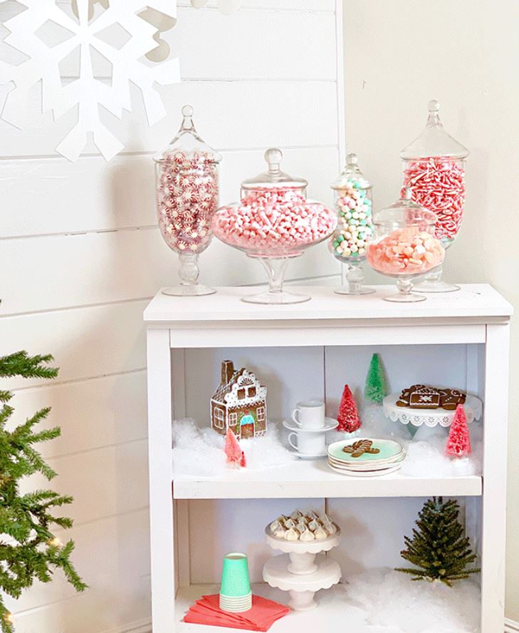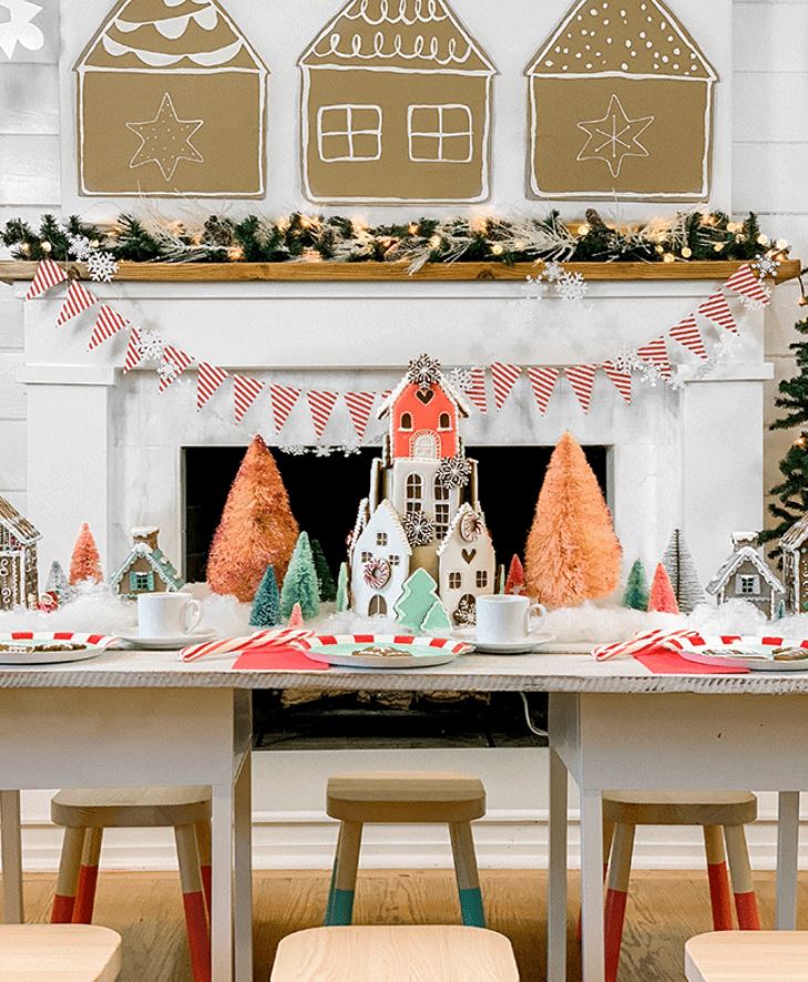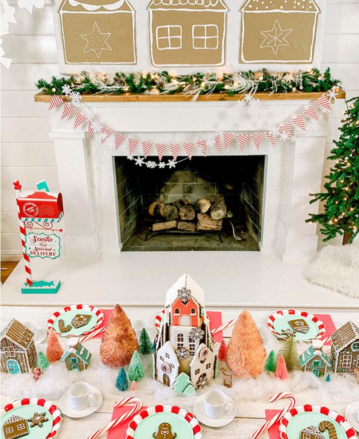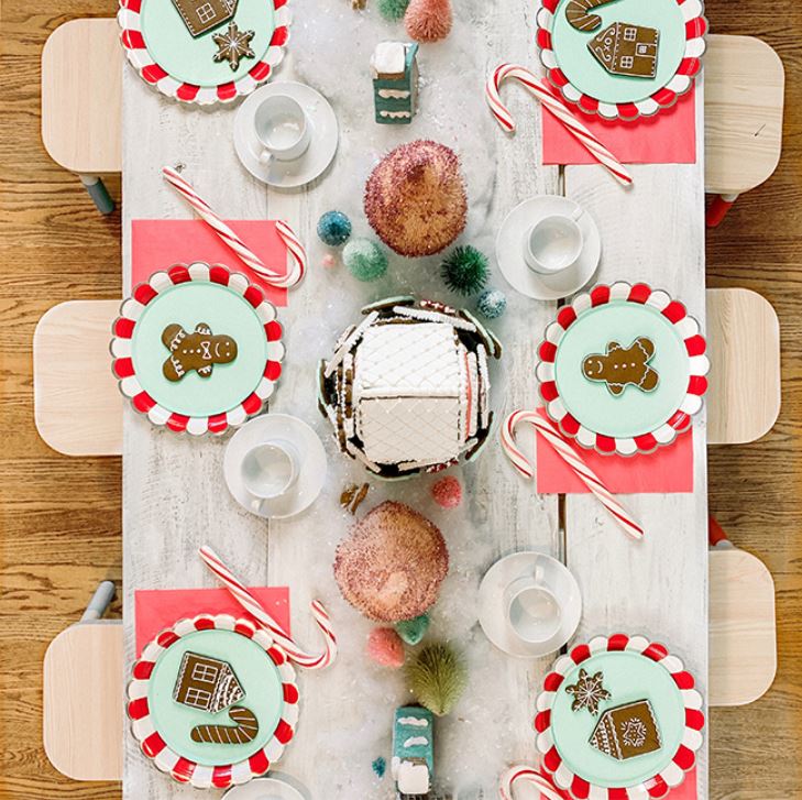 Мы любим, когда на вечеринках есть какие-то активности и творчество, а не только поедание сладостей. Если у вашего ребёнка день рождения в декабре, то отличная идея устроить его в новогоднем стиле. Этот праздник украсили изображениями пряничных домиков, на столе расставили ёлочки, а активностью было как раз украшение пряничных строений. Сладкий стол пряниками и карамельками, а все полочки устланы искусственным снегом! Настоящая новогодня композиция. Все гости получили тематические приглашения с пряниками! В нём говорилось, что детей приглашают отметить день рождения и собрать свой собственный пряничный домик, который можно будет потом отнести родителям. Для сервировки использовали полосатые, как леденцы, тарелки, к которым добавили тарелочки поменьше, мятного цвета. А рядом как раз и лежали леденцы-трости, создающие зимнее настроение! На столе не стаканы, а чашечки, ведь из напитков будет горячее какао с маршмеллоу! Стол украсили пряничные дома от кондитеров, настоящие произведения искусства! И разноцветные ёлочки, расставленные среди искусственного снега. Цвета сочетаются просто идеально! И сразу создаётся праздничное настроение :) Малышам выдали заготовки: стены, крыши и пол, а к ним украшения и сладкий "клей". Как здорово, что можно проявить свою фантазию и создать совершенно уникальный домик, а потом похвастаться перед родителями!